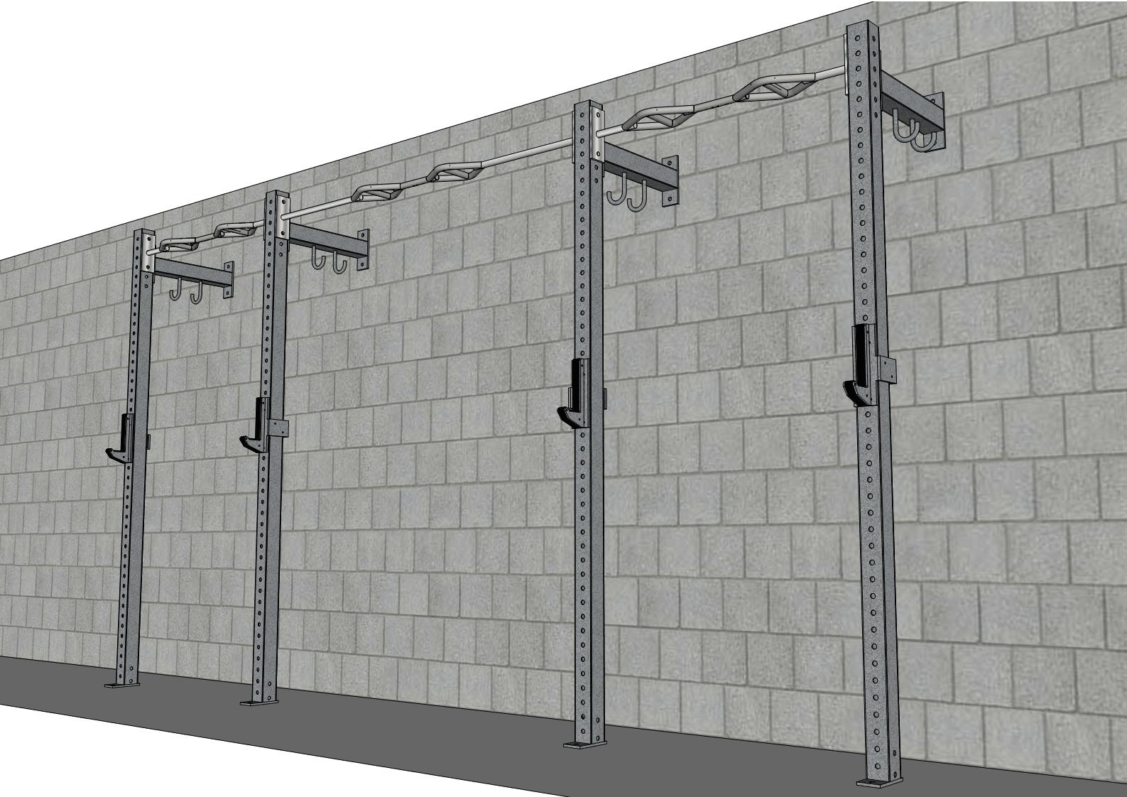 TGrip Commercial 14' Low Profile Wall Mount Rig - 3x3 Steel - Functional Multi-Grip Pull-Up - Sandwich Style J-Hooks