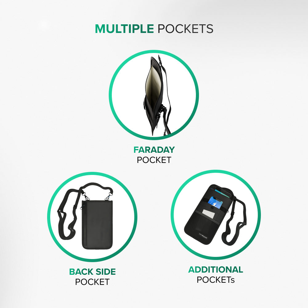 Perfect for traveling, airports, crowded public events, commuting, school, business, and military applications, the ConcealShield Phone Faraday Travel Pouch helps you stay secure and private in a world full of surveillance and data breaches. Keep the essentials shielded without sacrificing convenience, thanks to its practical design and cross-body versatility.