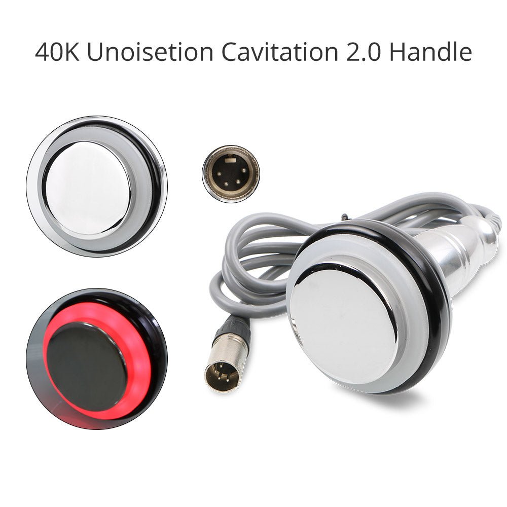 • Unoisetion Cavitation 2.0 head with Frequency: 40KHz and Power: 45W for targeted fat disruption and contouring.