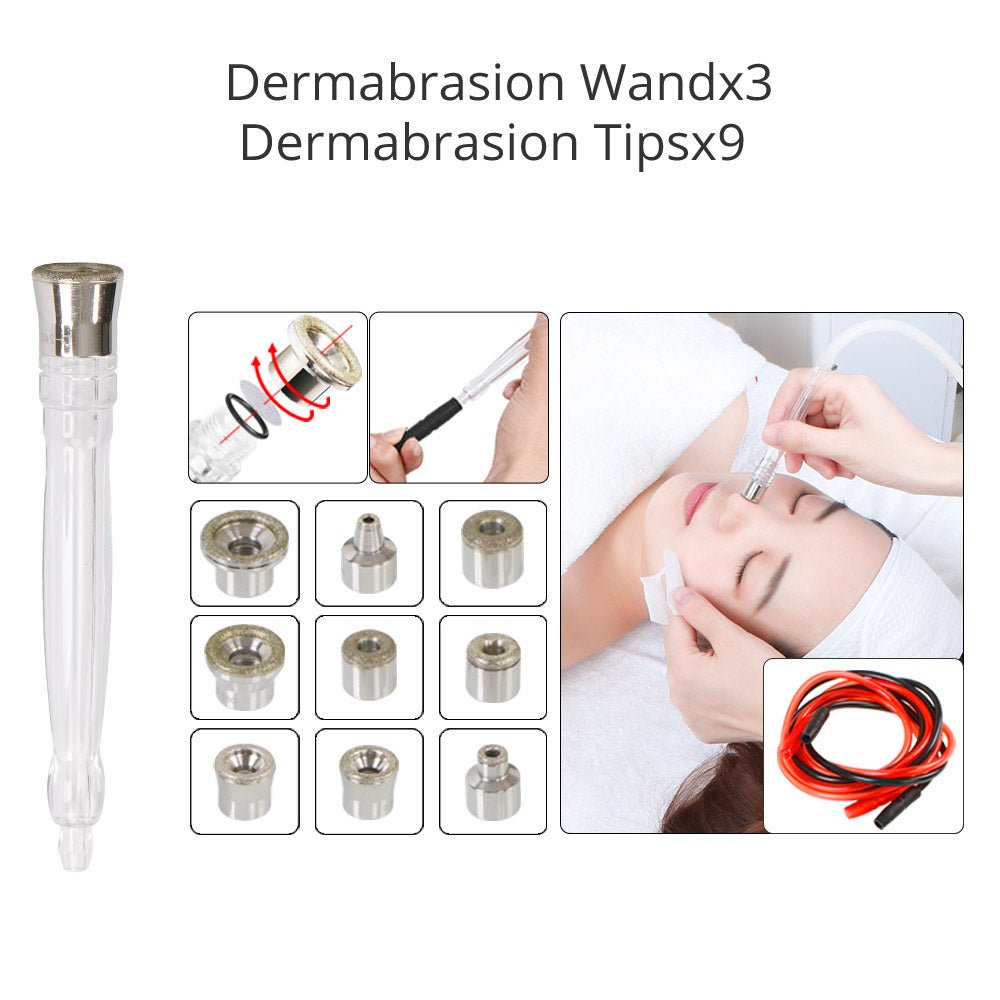• Dermabrasion system for exfoliation, with a Dermabrasion Nozzle (Diameter: 0.2mm-0.3mm) and Fluid Cup Capacity: 7cc to support salon-grade exfoliation sessions.