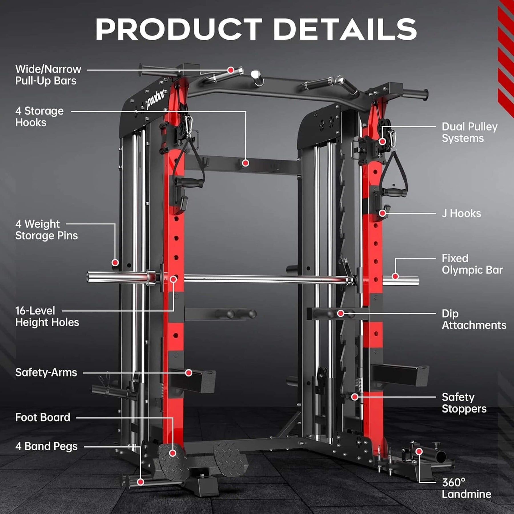 Premium All-In-One Squat Rack Power Cage With Smith Machine, 2000LBS (SAK59213)
