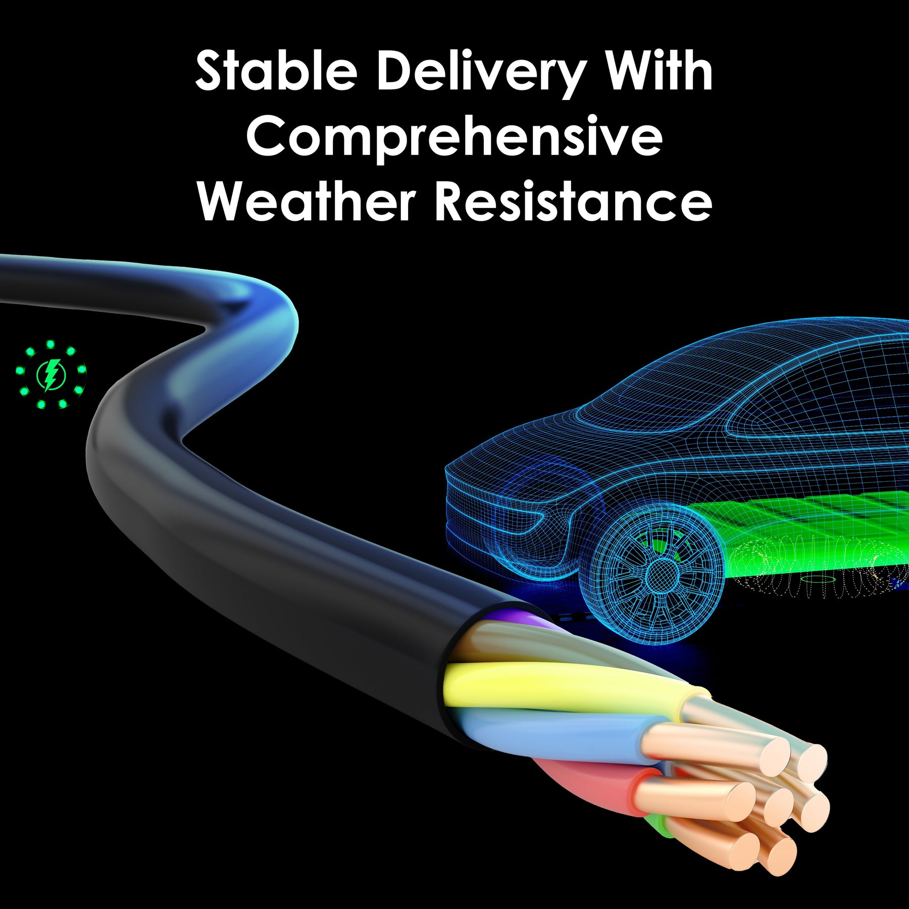 • 32 AMP W/ 17 FT EXTENSION — Fast charging speeds support currents up to 32 amp, which can fully power your vehicle in 1–2 hours. A heavy-duty 17ft outdoor weather proof cable allows you to charge your EV from a comfortable distance.