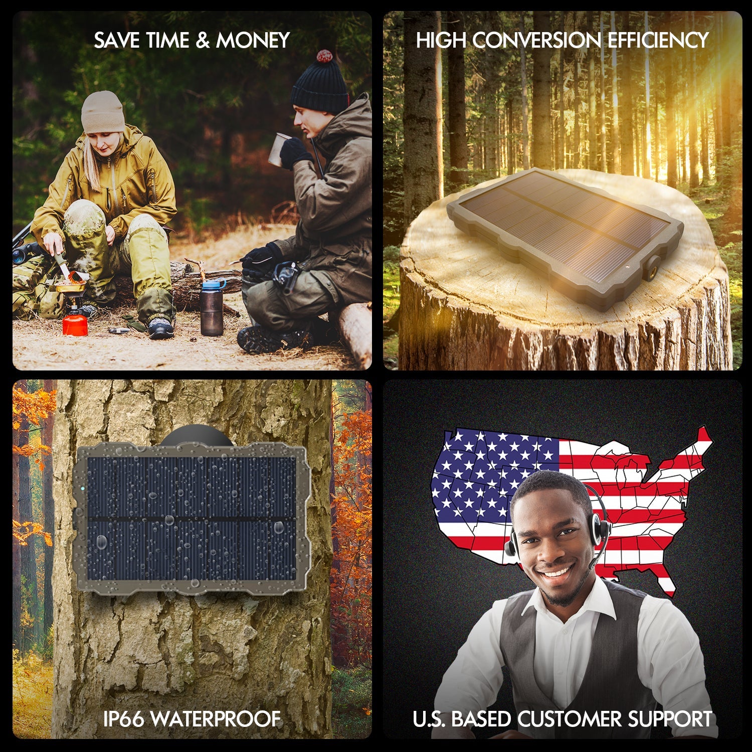• Money-Saving – Remove the need of having to change out your expensive Trail Cameras batteries and waste time every 2-3 weeks by using our eco-friendly solar power solution. This is the most cheapest and efficient powering option to help you power your cam 24/7.