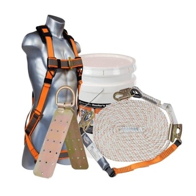 The Roofer's Bucket Kit - All Sizes is the all-in-one fall protection solution built for roofing pros who want safety without the guesswork. This complete kit brings together a top-tier harness, lifeline, and reusable anchor to keep you protected from start to finish.
