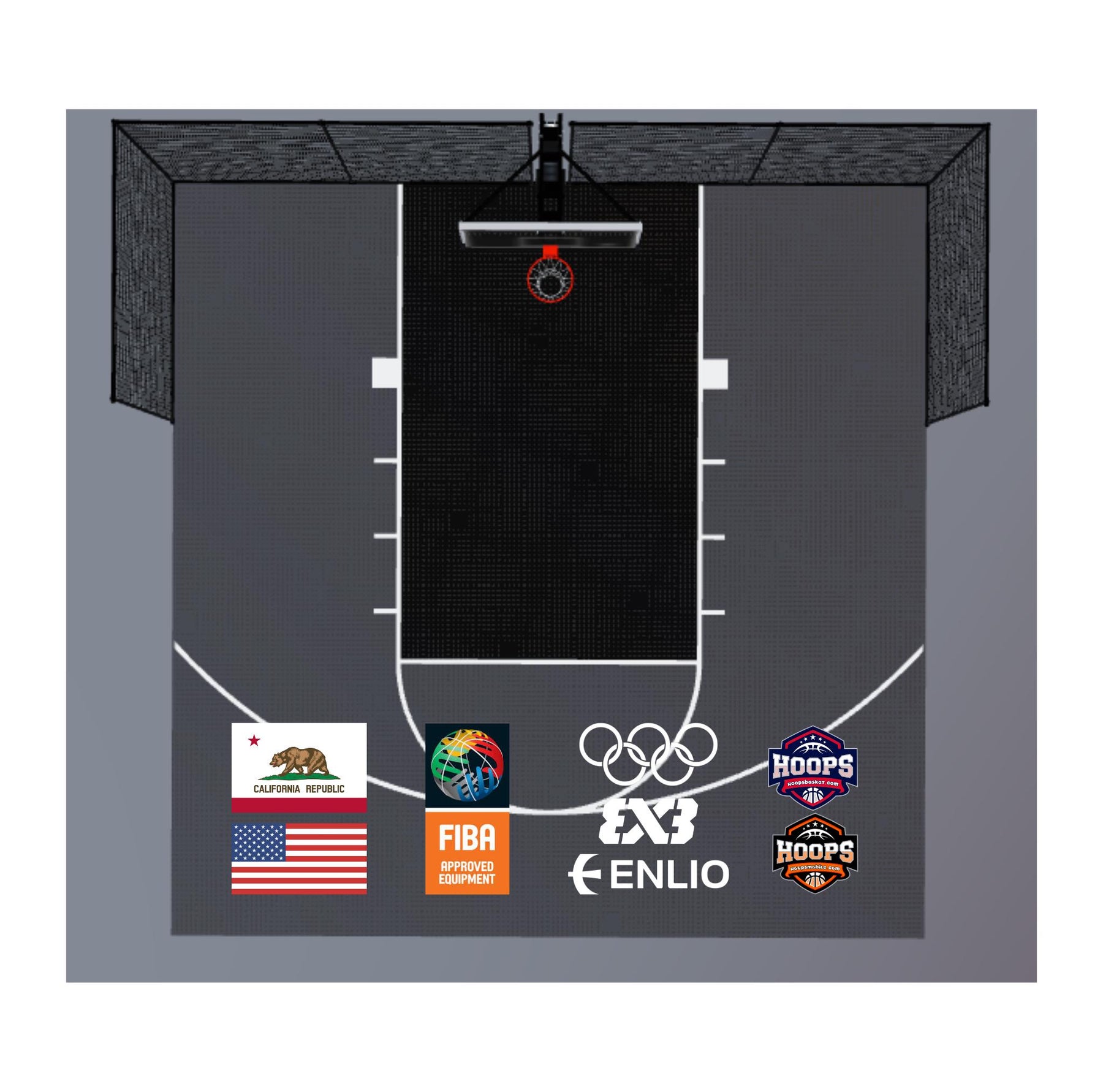 USA Enlio Official Olympic 3X3 Basketball Court – FIBA Certified – 30' x 30' – Multi-Sport