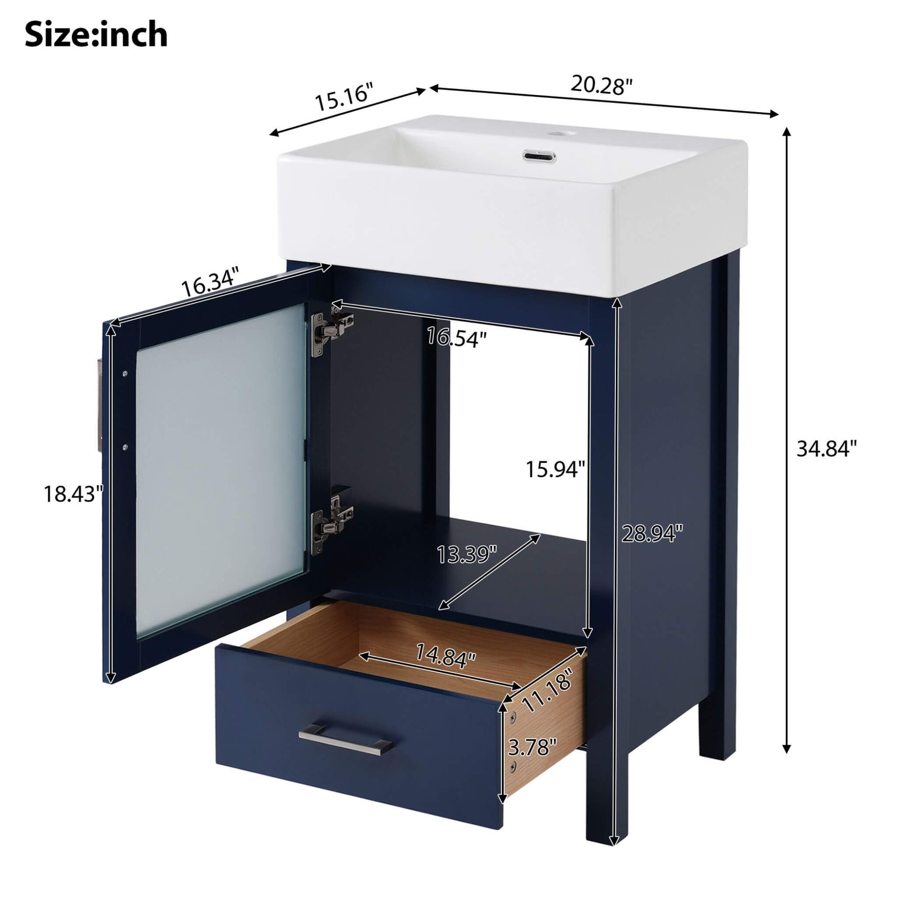 Alora 20-Inch Modern Bathroom Vanity With Ceramic Sink And Storage Cabinet (SAK39851)