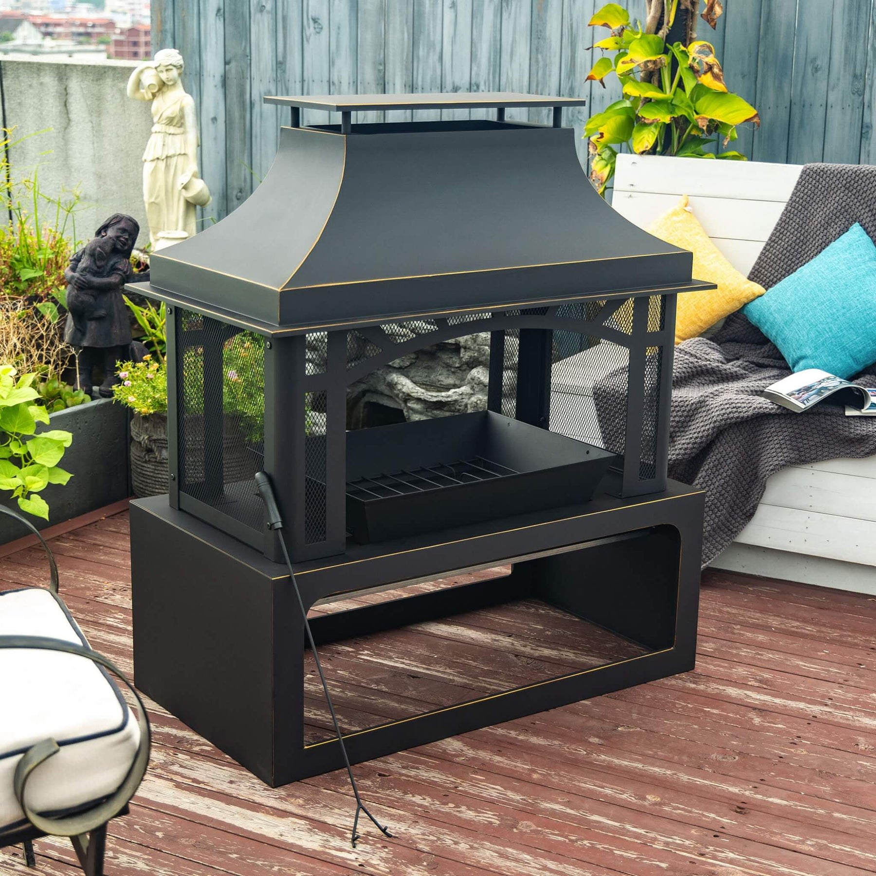 • Constructed from top-grade, heavy-gauge steel with a black powder-coated exterior, this fireplace is built for exceptional durability and resistance against high temperatures and rust, ensuring it remains a steadfast part of your outdoor space for years to come.