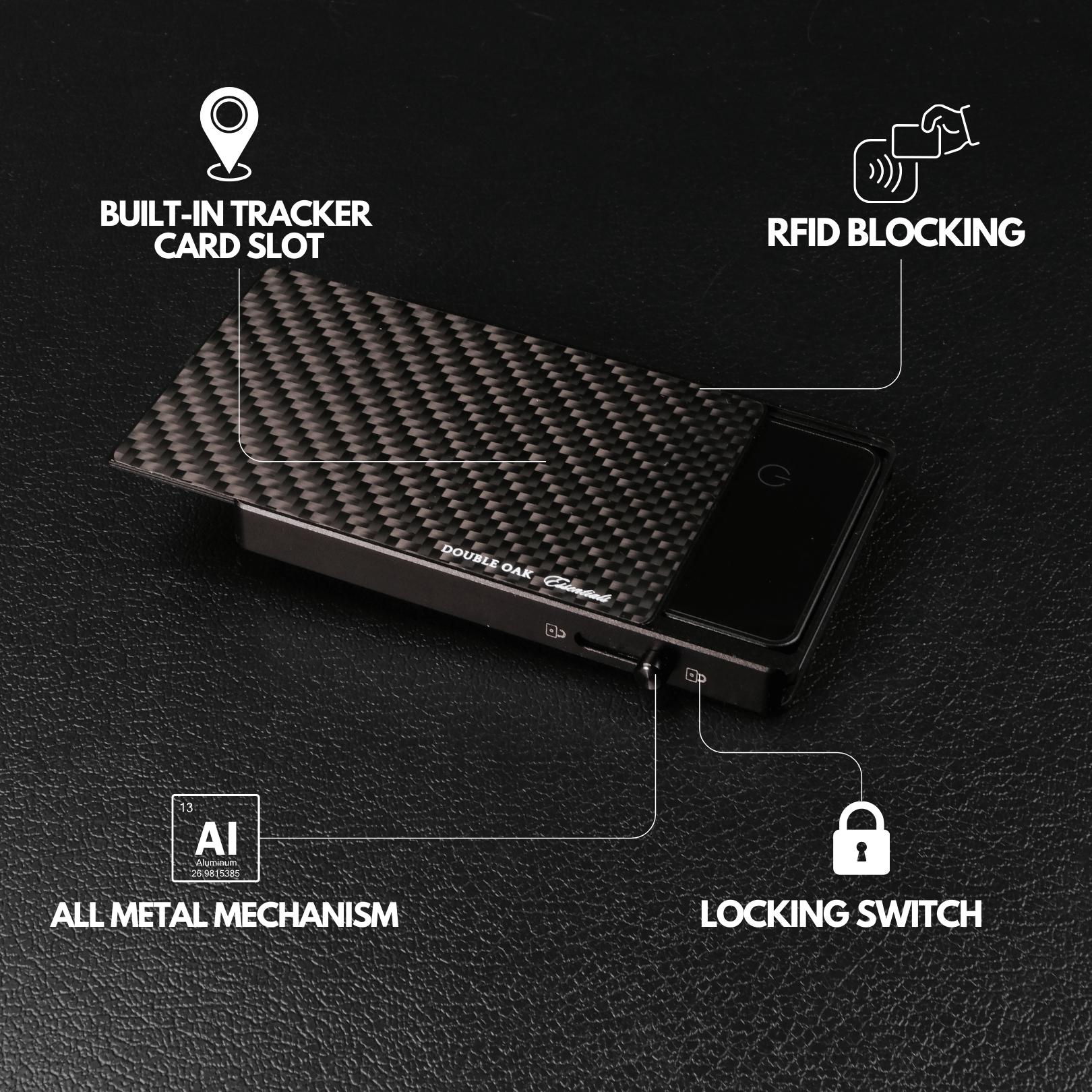• Holds up to 5 cards in the chamber with a dedicated wallet tracker card slot.