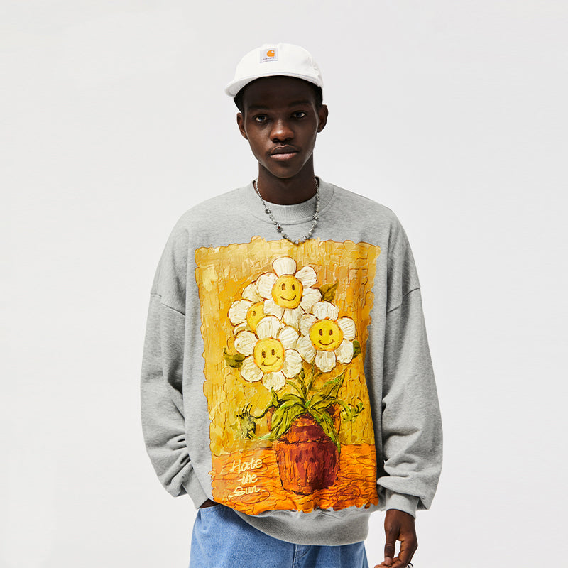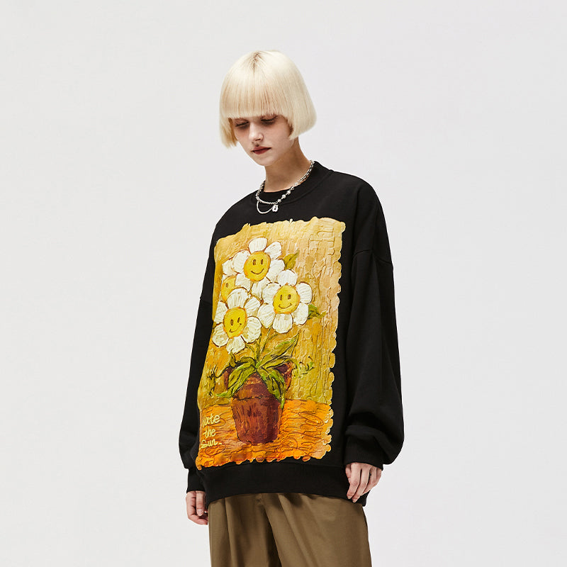 Meet the Daisy Flower Splash Art Crew—a bold yellow 100% cotton crewneck sweater that grabs attention with playful daisies and streetwear attitude. Designed for art lovers and city-style enthusiasts who want comfort without dull moments.