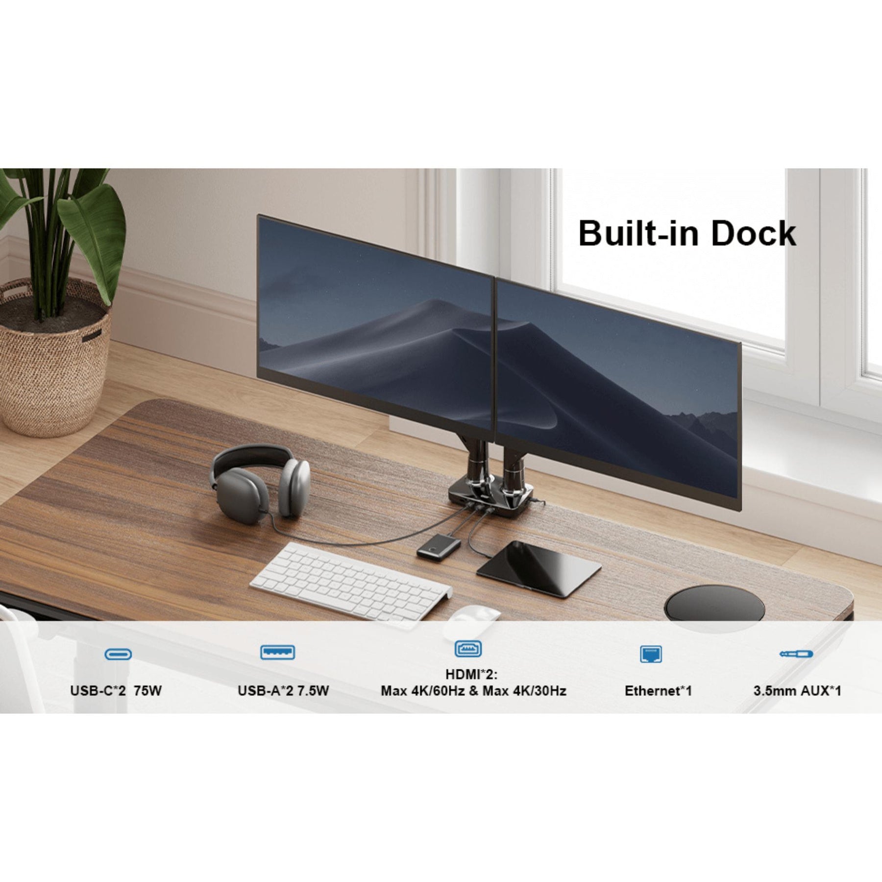 Meet the ErgoAV ErgoLink Motion Desk Mount—the dual-monitor hub designed for displays up to 34" and 22 lbs, with a built-in hub for fast, organized connectivity. It adds a tech-forward touch to any modern workspace while keeping cables under control and your setup looking sleek.