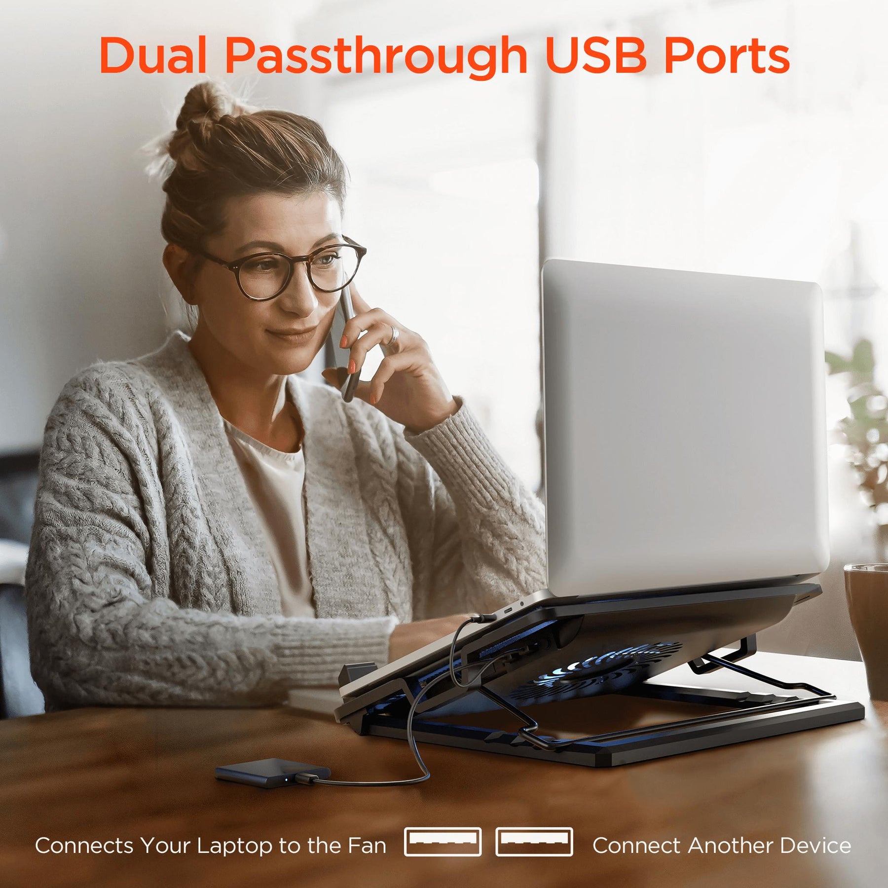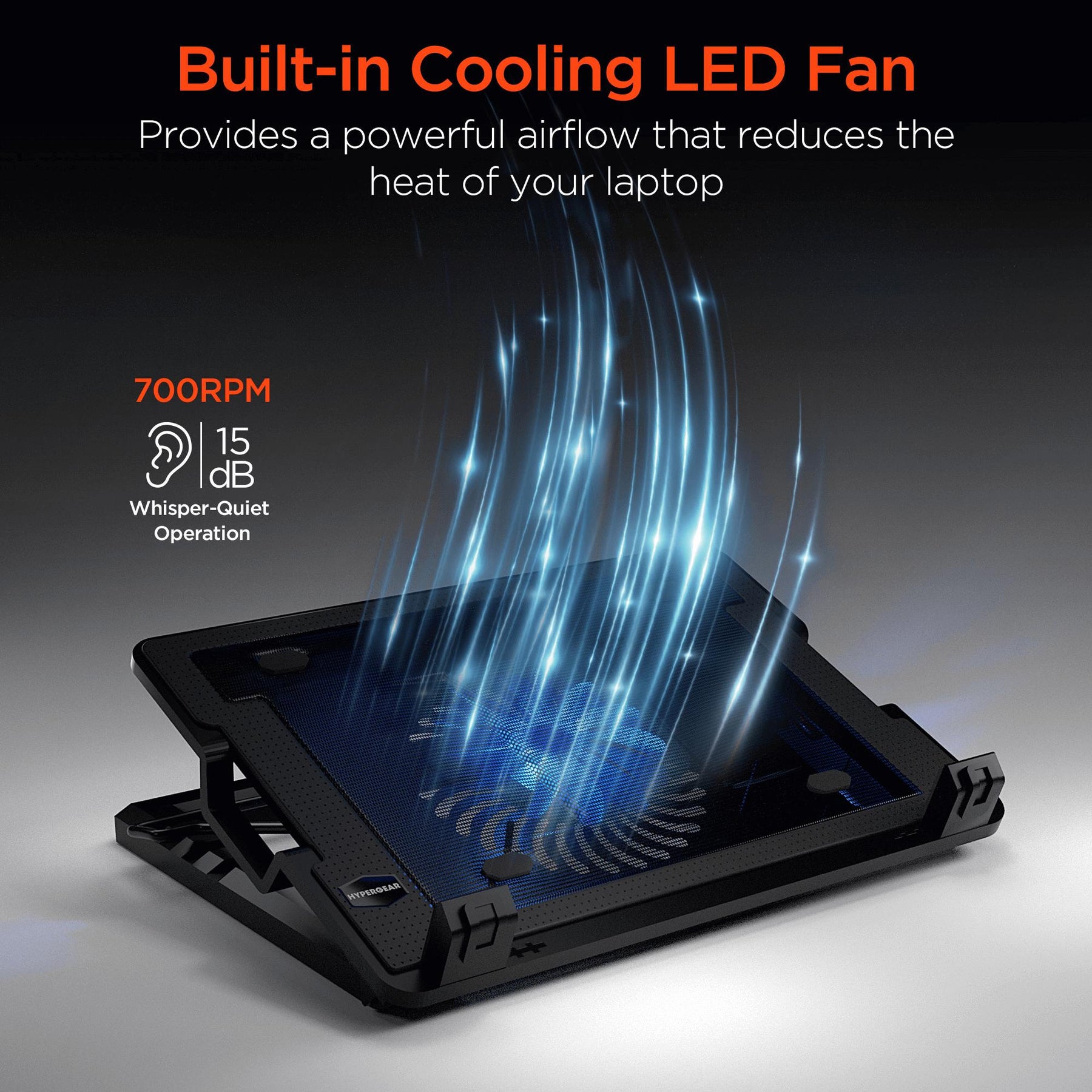 • Built-in LED cooling fan with blue LED for active heat management and longer laptop lifespan; Fan Speed: 700 RPM