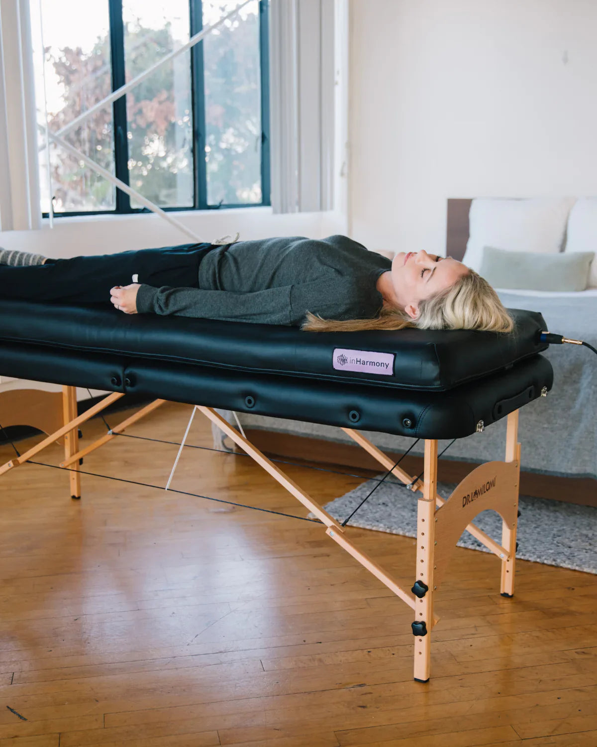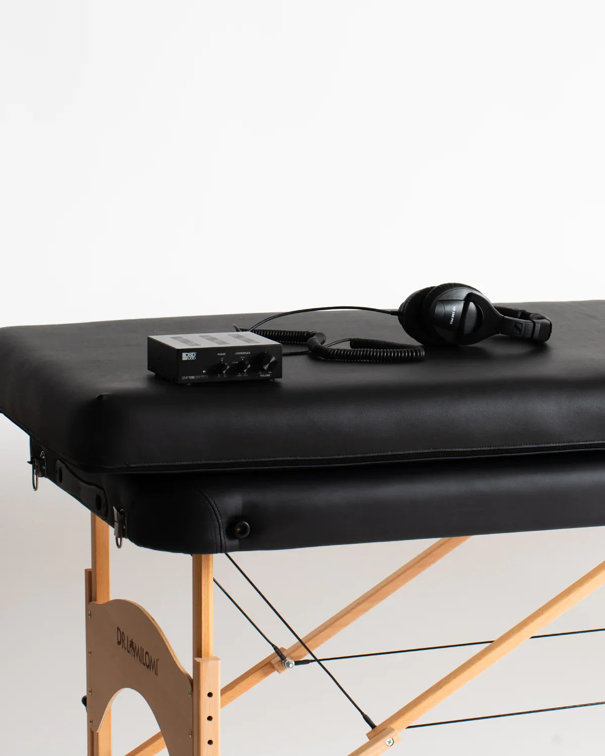 Introduced in 2018, the inHarmony Practitioner was crafted to enhance body treatments with the benefits of vibration therapy. This system blends vibro-tactile sensations with vibroacoustic sounds to deliver a holistic experience. Note: a massage table or stand isn’t part of the package. Explore the SoundCloud audio link to hear Craig Goldberg discuss the inspiration behind the inHarmony Practitioner, our market goals, and the advantages it offers both practitioners and clients.