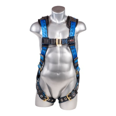 Built with a durable polyester construction in a sleek blue/black color scheme, this harness delivers full-body support and a secure dorsal D-ring attachment for your safety line. Quick-adjust tongue buckle legs, an adjustable chest strap, and shoulder pads combine to keep you securely positioned without the usual fatigue. Plus, it’s ANSI Z359.11-2021 certified, because safety standards aren’t just a suggestion.