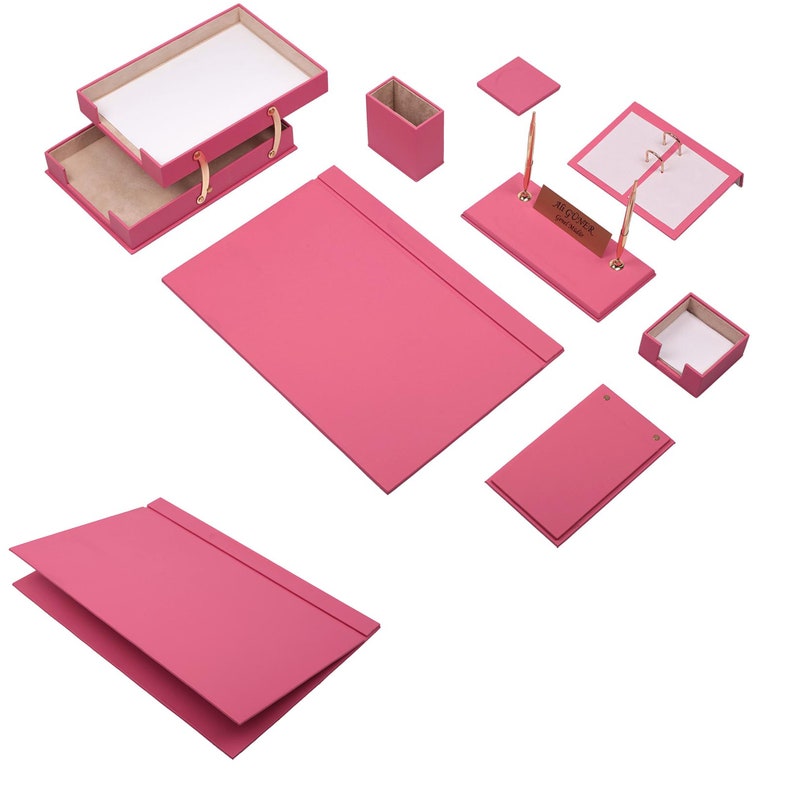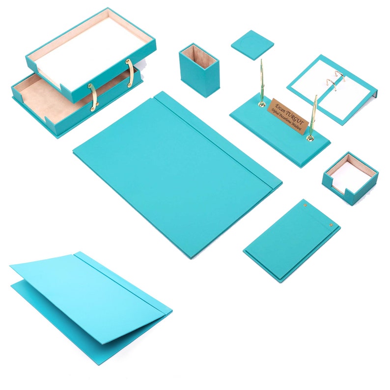 • Complete desk organization: Includes Desk Pad with Cover, Pen Holder, Note Paper Holder, Leather Coaster, Calendar Holder, Writing Pad, and Double Document Tray to keep papers in order.