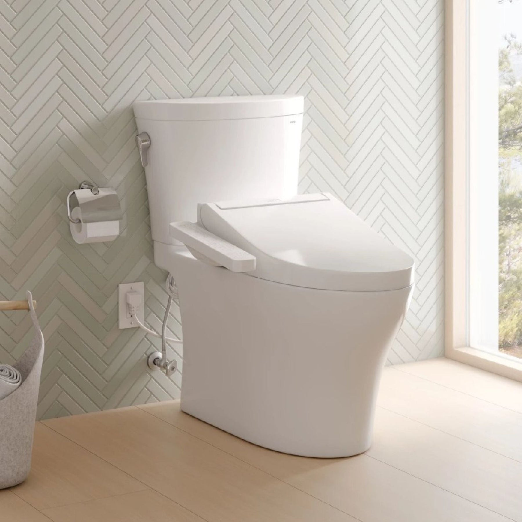 • Integrated Washlet C2 bidet seat with front and rear cleansing, oscillating spray, and adjustable temperature and pressure for a personalized, refreshing cleanse.