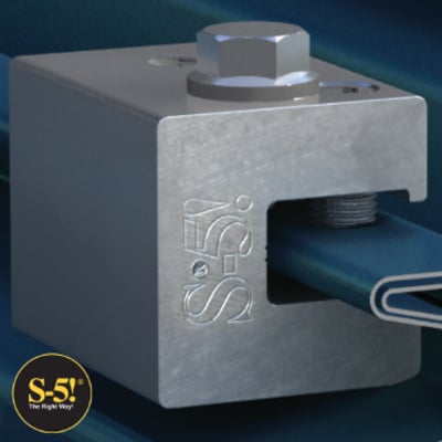 The S-5-H90 Mini is a bit shorter than the S-5-H90 and has one setscrew and one threaded bolt hole rather than two. The H90 Mini clamp is a more economical solution for lighter-duty attachments where Herculean holding strength is not required. The mini is the choice for attaching all kinds of rooftop accessories: signs, walkways, satellite dishes, antennas, rooftop lighting, lightning protection systems, solar arrays, exhaust stack bracing, conduit, condensate lines, mechanical equipment.