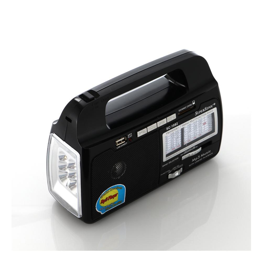 Meet the Supersonic 9 Band AM FM SW1-7 Portable Radio (SC-1082) — a compact, feature-packed companion for home, travel, and outdoor adventures. It blends radio versatility with MP3 playback, so you can tune in or crank up your favorite tracks wherever you go.
