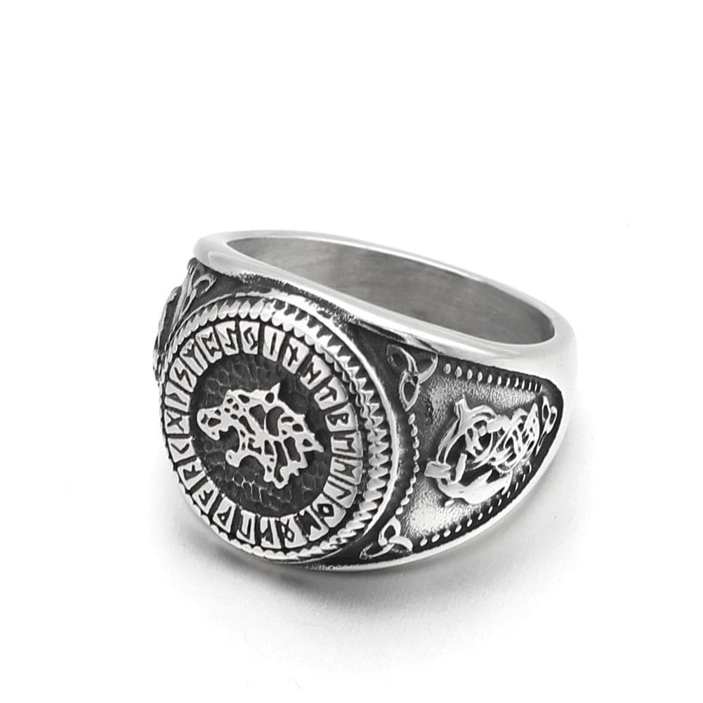- Stainless Steel Ring with the Norse Wolf Fenrir. Fenrir's surrounded by the Elder Futhark Runes which were the Alphabet of the Vikings.