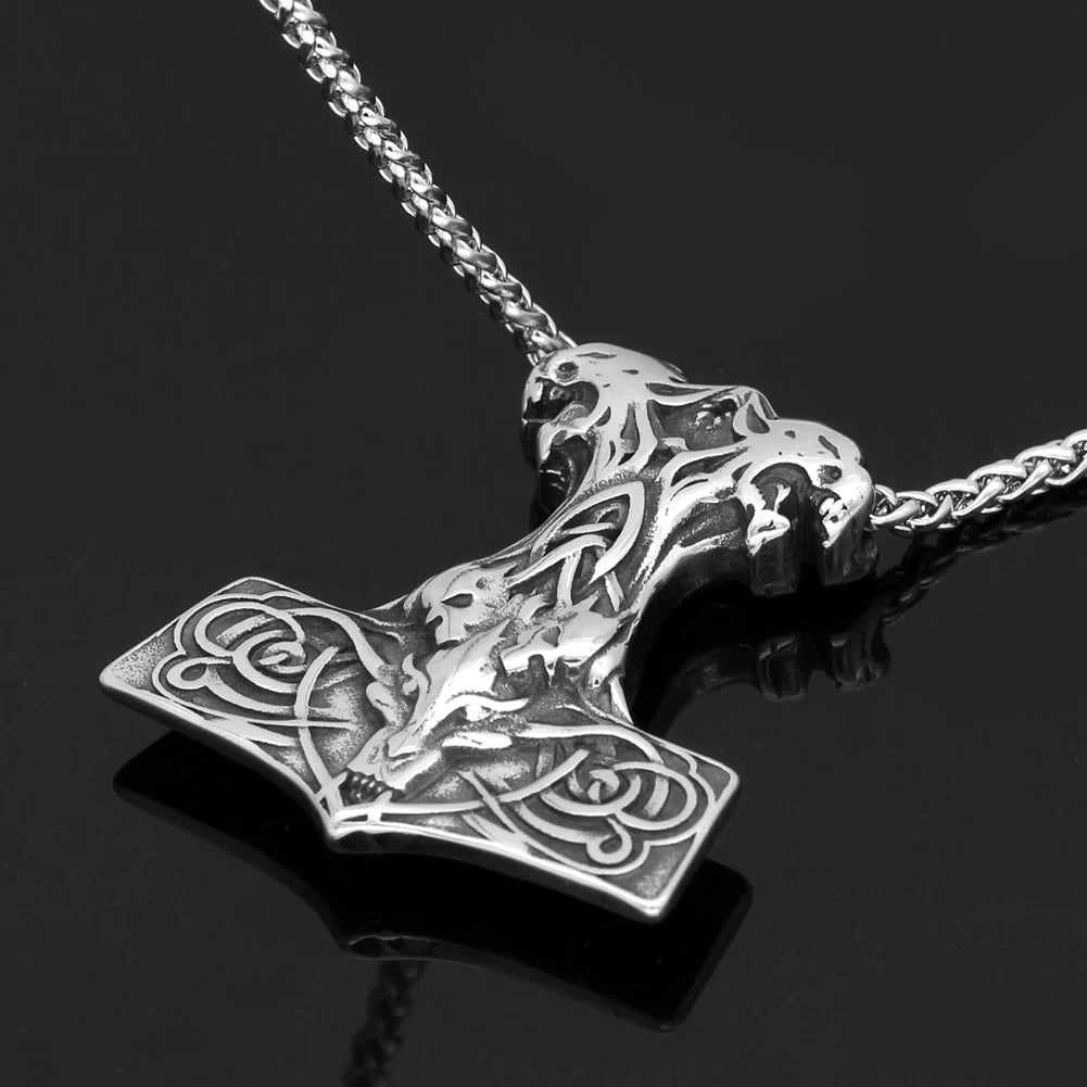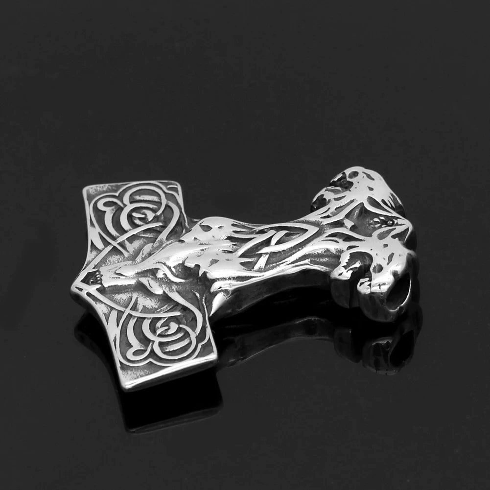 Vikings Wolf Thor's Hammer Stainless Steel Necklace