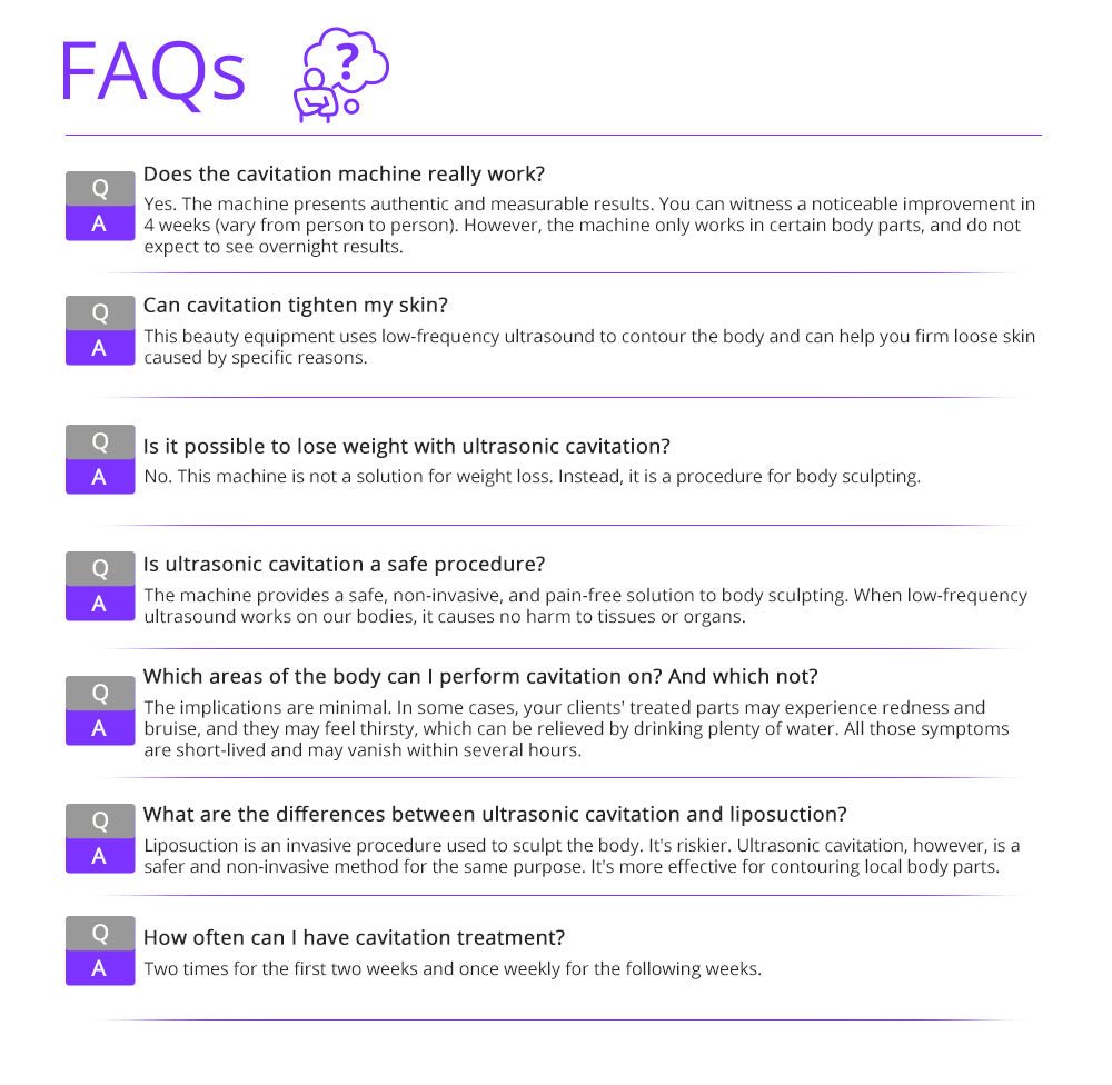 • Unoisetion 30K/50K Cavitation & RF Handle – 30K Frequency: 30,000 Hz; 50K Frequency: 50,000 Hz; RF Frequency: 1 MHz.