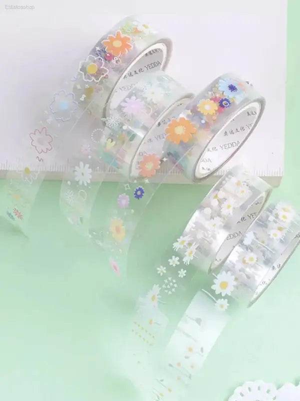 Transparent Daisy Pattern Decorative Tape Set with Waterproof Design for Creative Crafters and DIY Projects