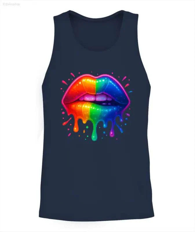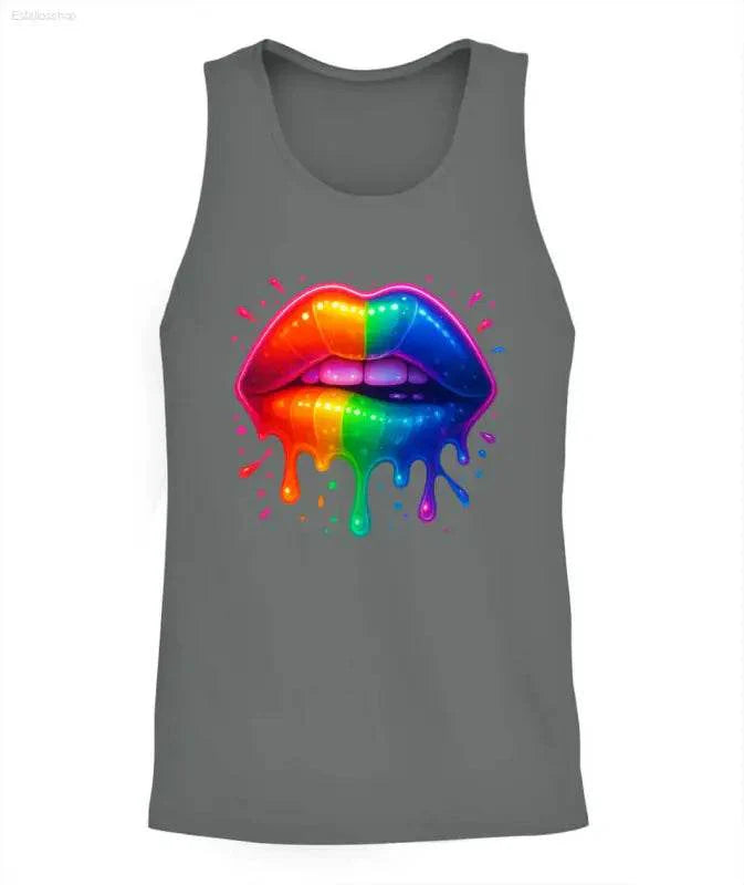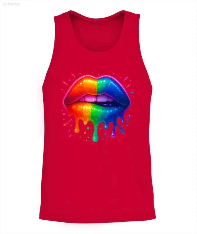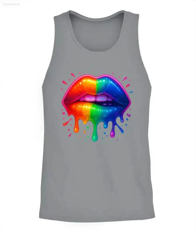 Trendy Unisex Gildan Tank Top Set with Vibrant Rainbow Lips Design for Stylish Self-Expression