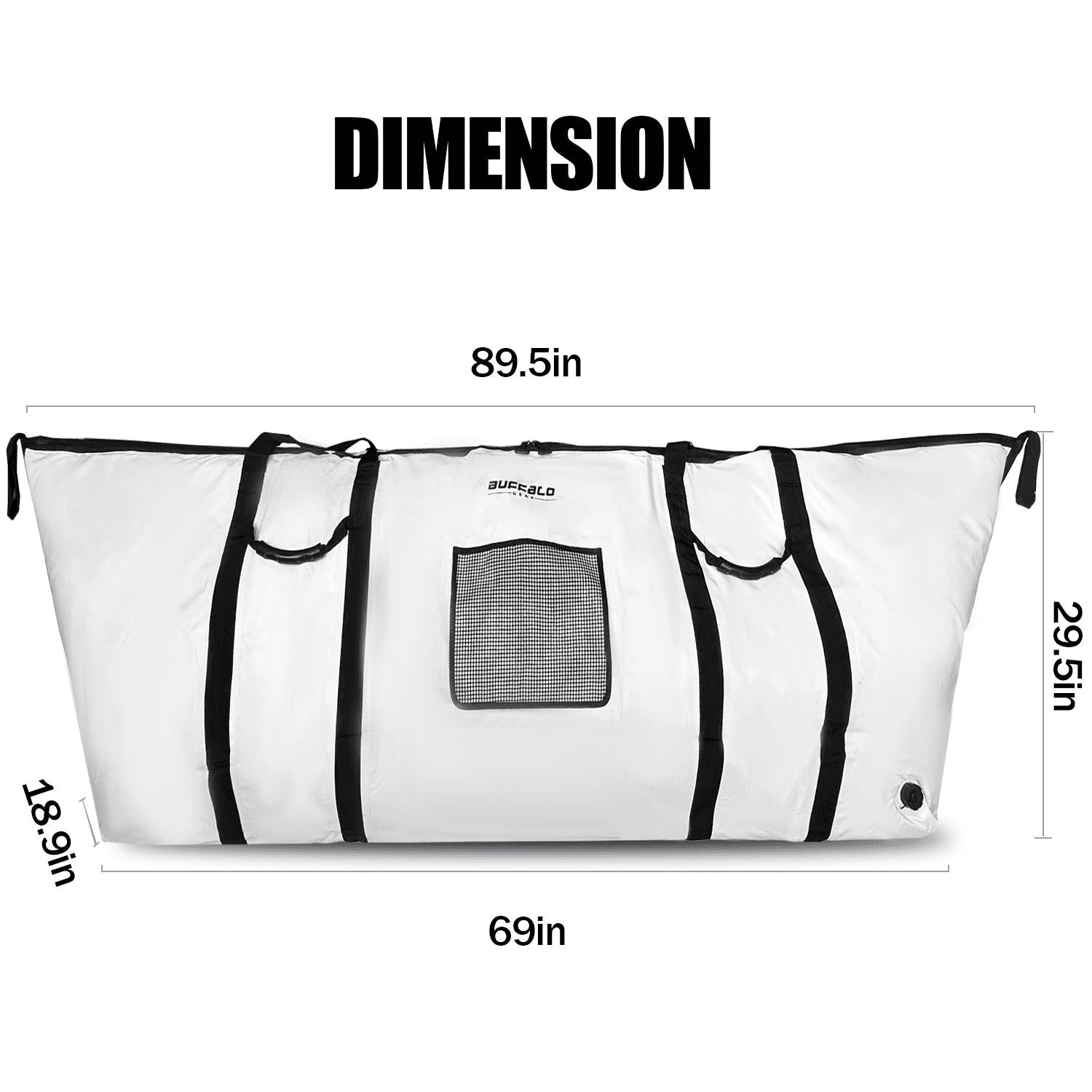 Buffalo Gear 90'' Fish Cooler Bag With YKK Zipper Buffalo Gear 90 inch Collapsible Fish Bag for Tuna and Big Game Buffalo Gear 90inch Tuna Fish Cooler Bag with Drain Valve Buffalo Gear Commercial Offshore Fish Bag for Big Tuna