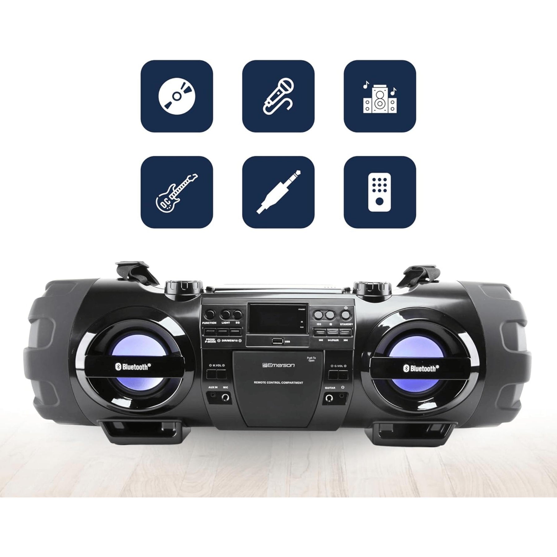The Emerson Dual Subwoofer Bluetooth Boombox blends a retro vibe with modern wireless tech, delivering bass you can feel. It’s the portable party-starter for music lovers who want a versatile, all-in-one audio solution that streams from AM/FM, smartphones, or Bluetooth-enabled devices.