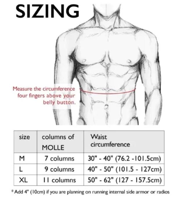 • XL (11 columns of MOLLE): 50" - 62"