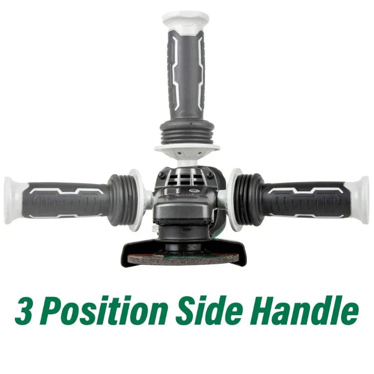 • 3 POSITION ANTI-VIBRATION SIDE HANDLE: To allow for safe grinding even in narrow spaces.