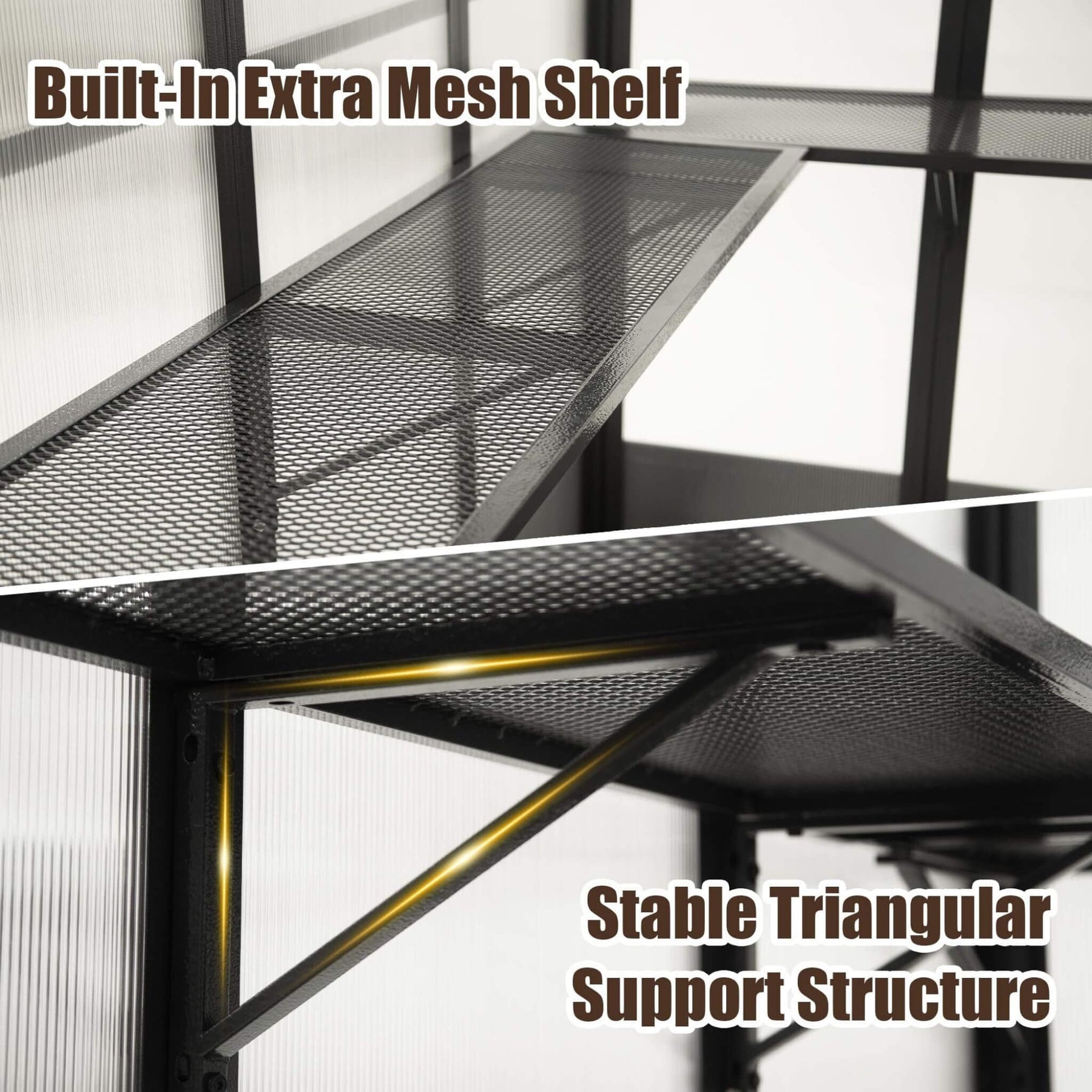 • 7.8-foot ceiling: 7.8-foot ceiling, there's more than enough space to grow tall plants, install shelves, or move freely while you tend to your garden.