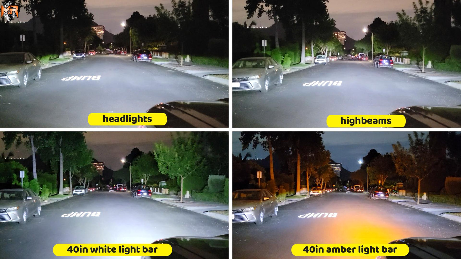 - Amber LED — Up to 7,000 lumens, used in poor driving conditions such as dust, fog, snow and rain. It reflects through air particles much less than the white light. Therefore, making it ideal for poor driving conditions.