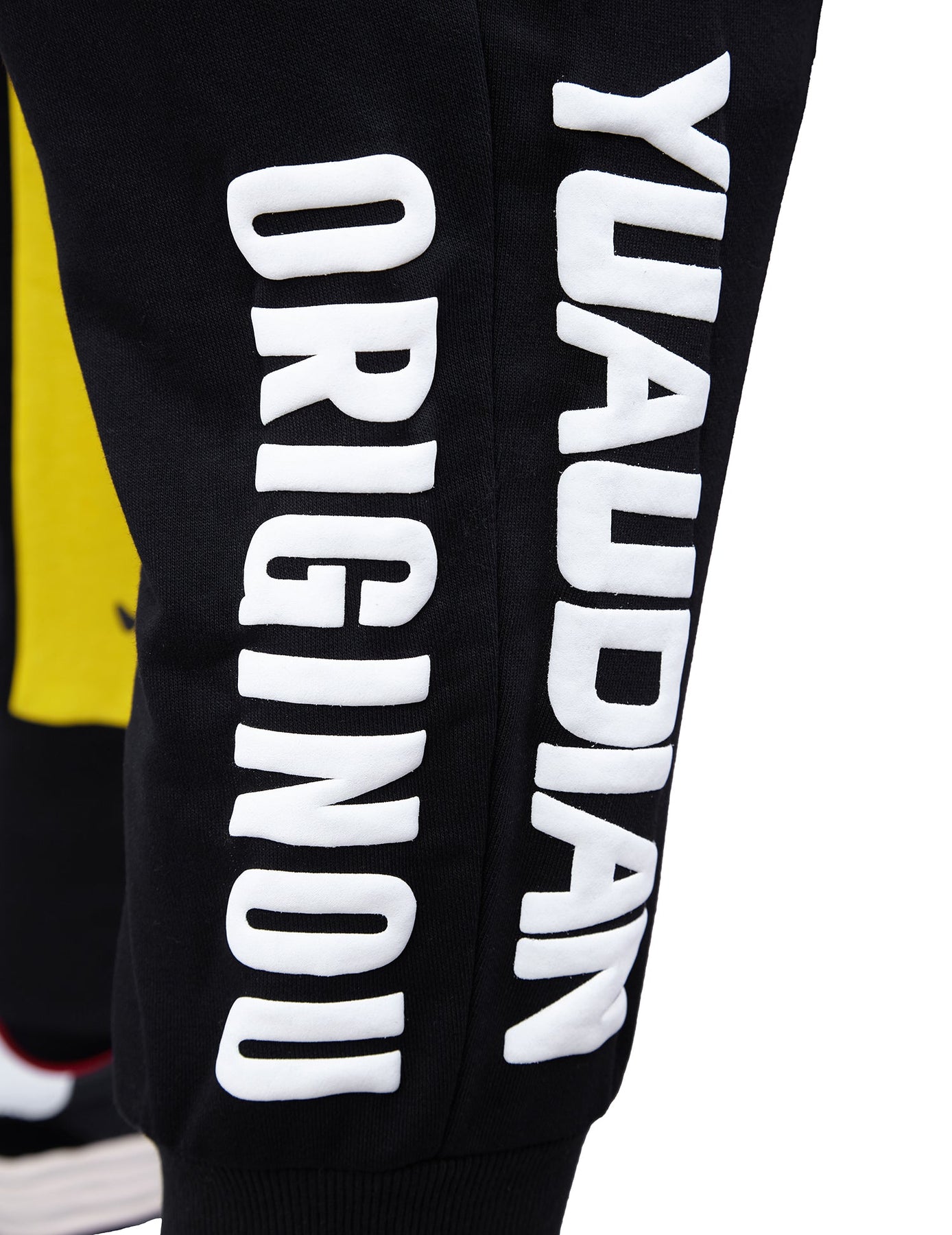 • Yellow and black cotton patchwork color design for a bold, athletic look.