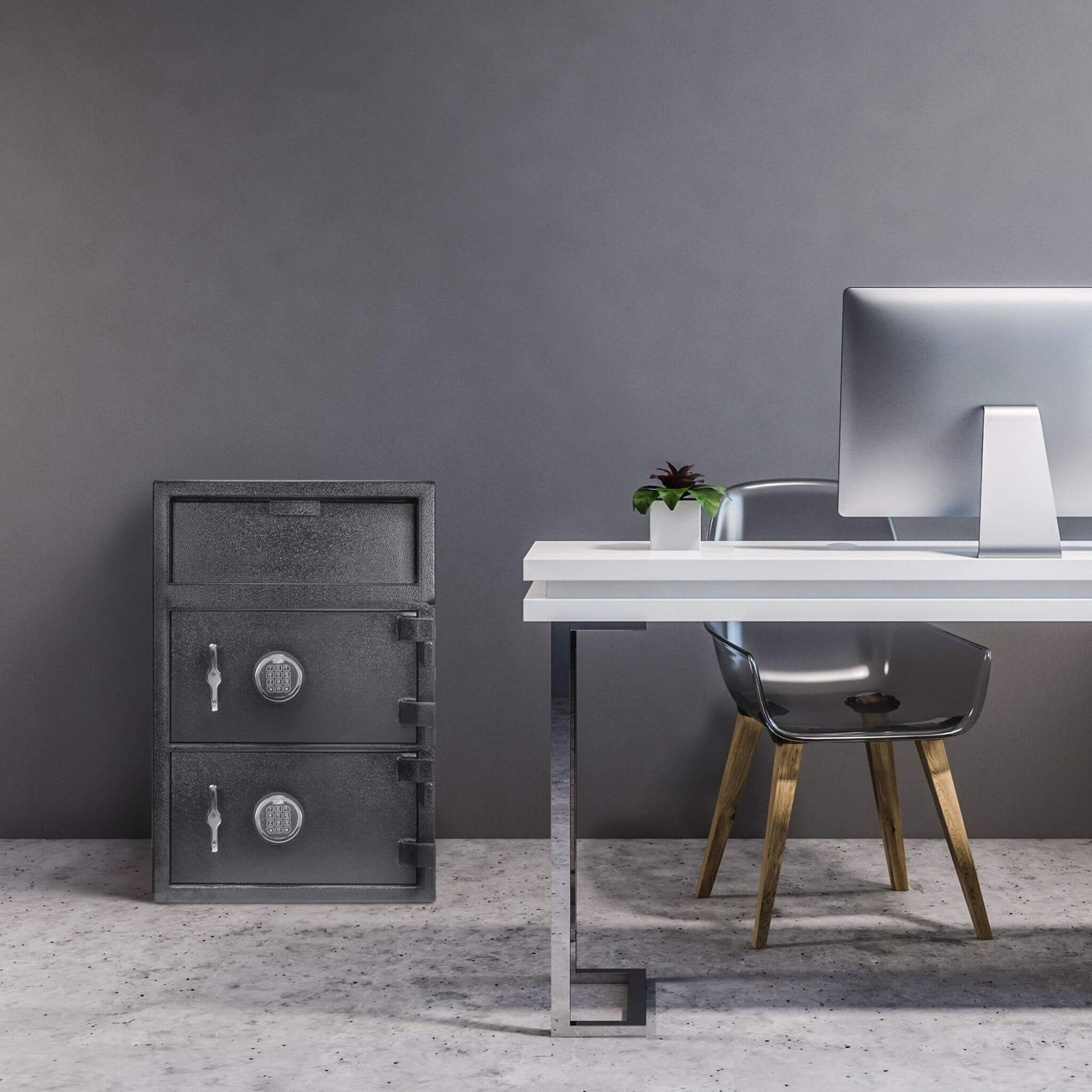 • Capacity & layout: 1.60 Cu.Ft Digital Depository Dual Compartment design with a top hopper for quick deposits and a bottom cabinet for larger items.