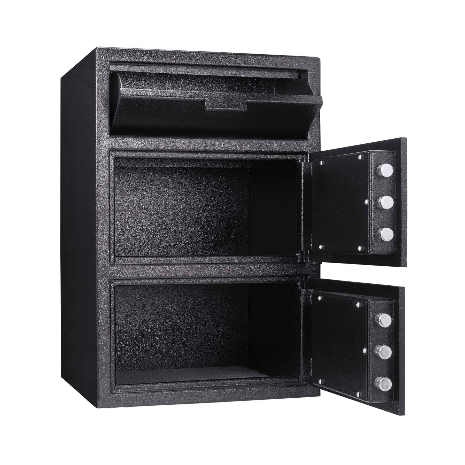 • Quick deposits: The top hopper works perfectly for quick drops of cash envelopes or important documents without ever opening the main door, thanks to jagged anti-fishing baffles that prevent theft from the outside.