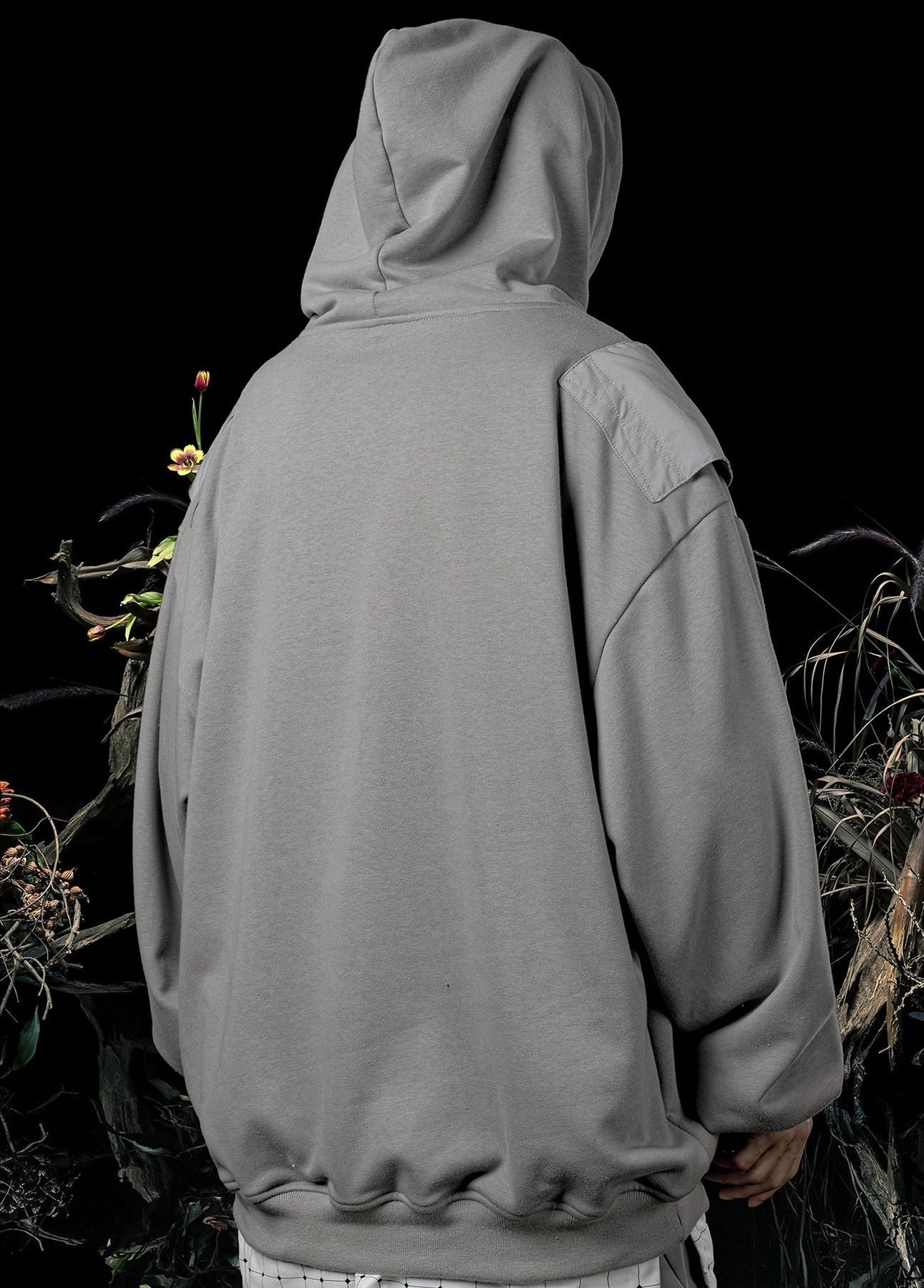 HiH29 Shadow Mixed Hoodie — USA sizing designed for everyday comfort and street-ready style. The model is 5 feet 11 inches or 180 cm and is 167 lbs or 75.7 kg and is wearing size L for oversized look and M for regular fit.