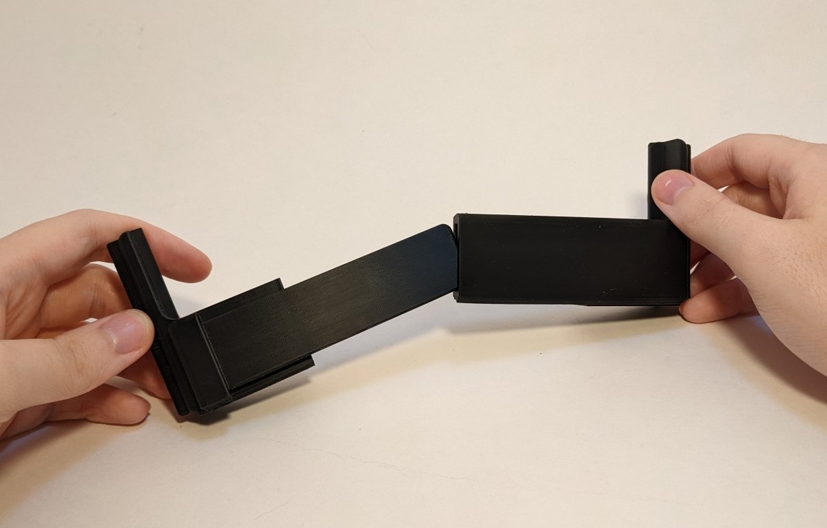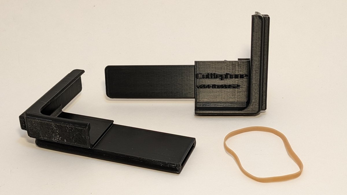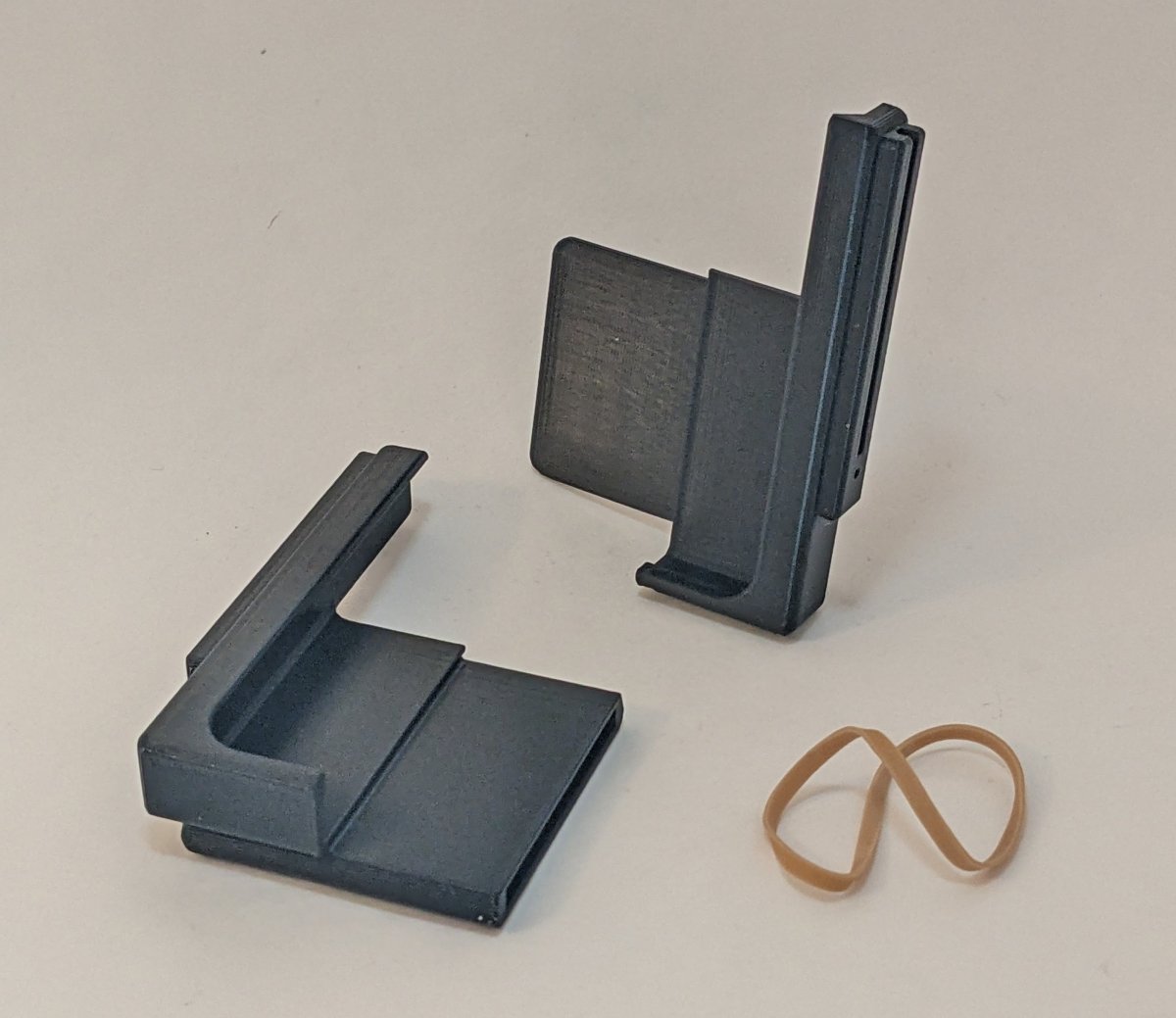 • 3D-printed, clamp-on design: parts clamp together with a rubber band (included).