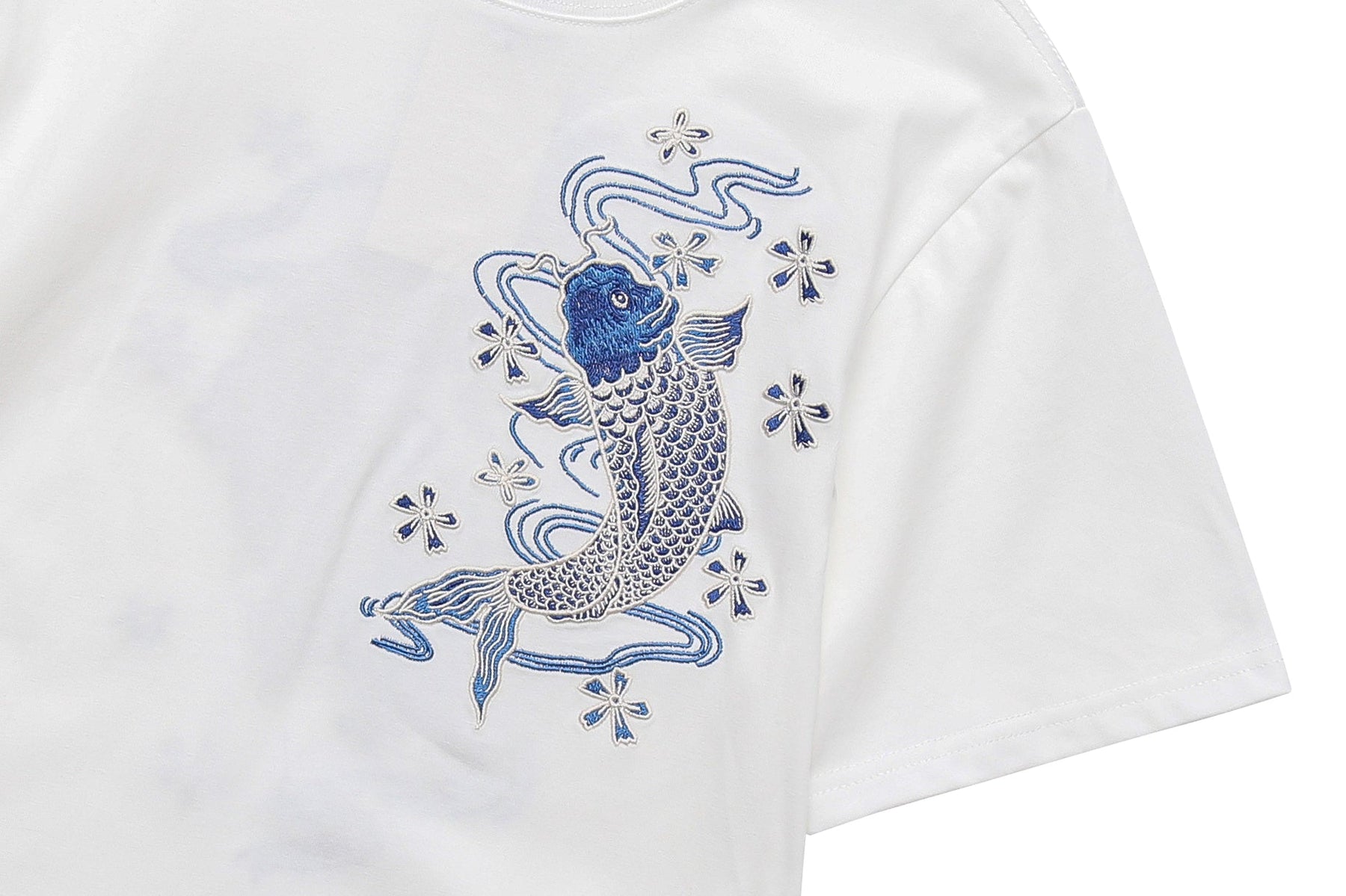 KH801 Blue Koi Embroidery Tee