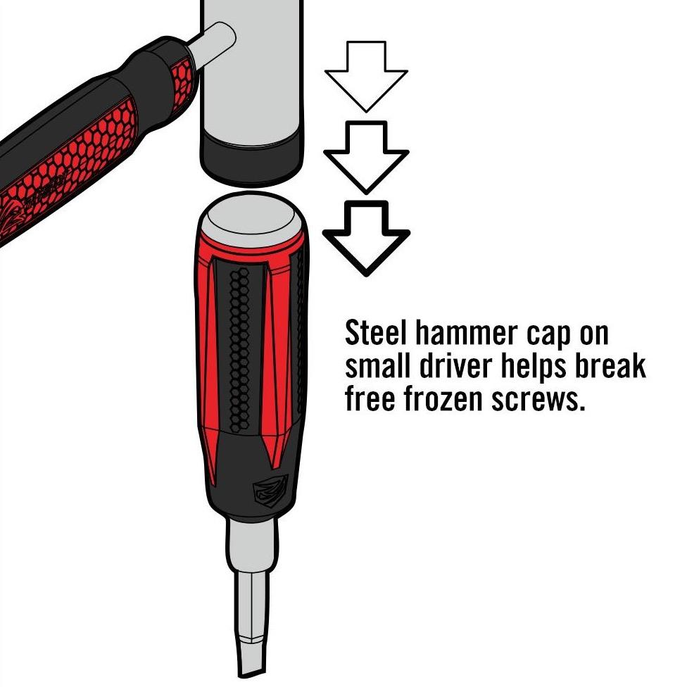 • Force Assist™ system — Small “close quarters” driver partners with the main driver to loosen frozen-in-place screws as well as precisely tighten screws. A proprietary system that helps you wrestle stubborn fasteners into compliance.