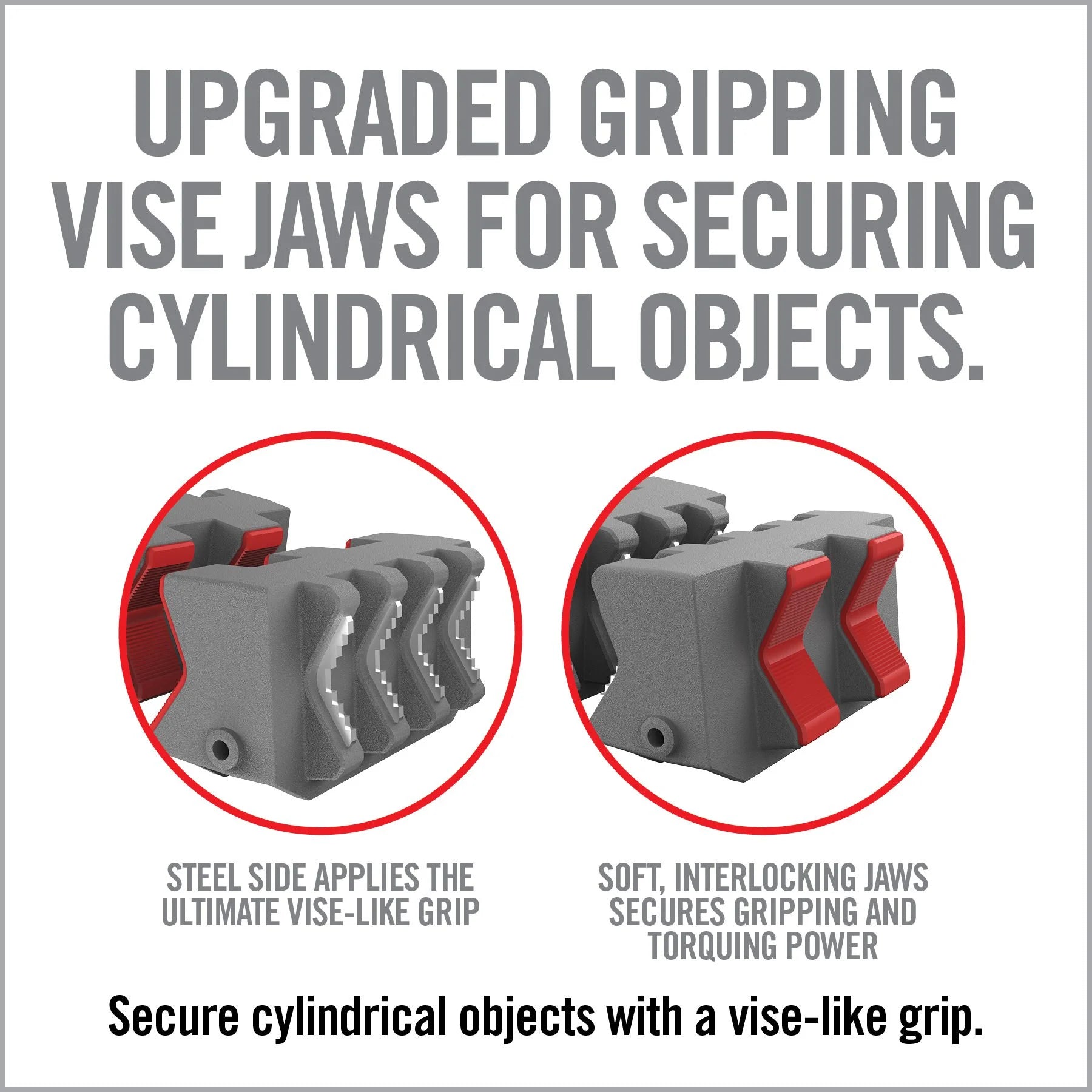 • Two-sided design to best fit the application — soft jaws on one side for delicate items and steel jaws on the other for tougher jobs.