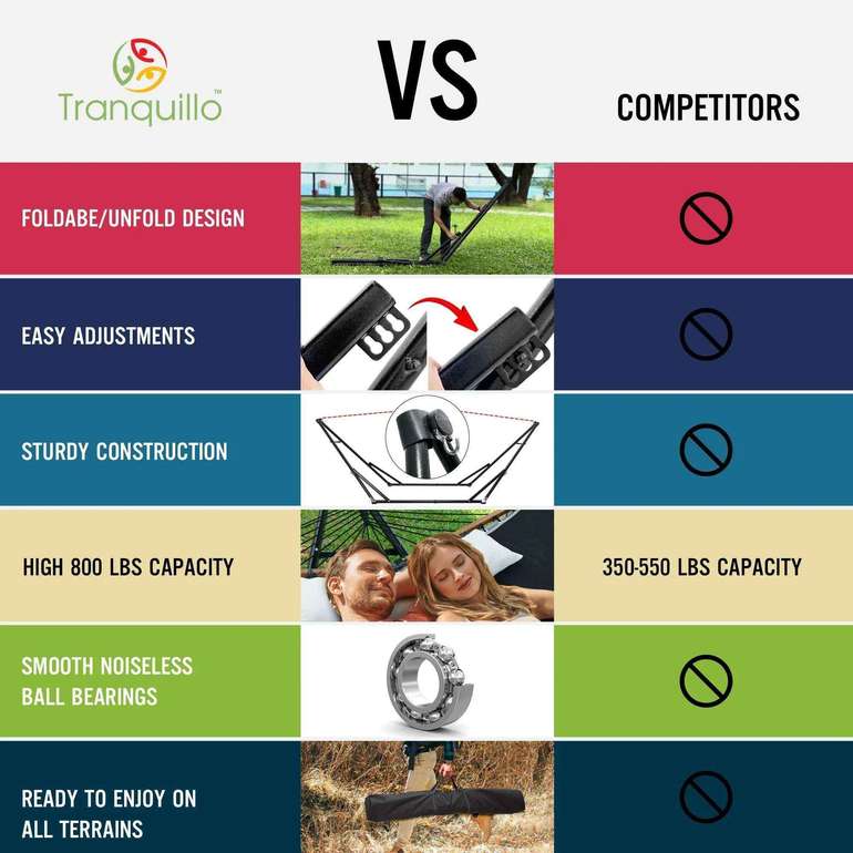 • Dimensions: With generous dimensions, this stand accommodates most standard hammocks while allowing for comfortable lounging.