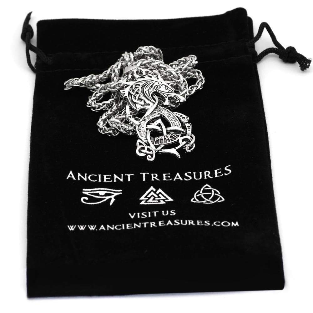 A Viking-inspired necklace featuring Fenrir, the monstrous wolf from Norse mythology, designed for fans of mythic lore who want a bold, durable statement piece.