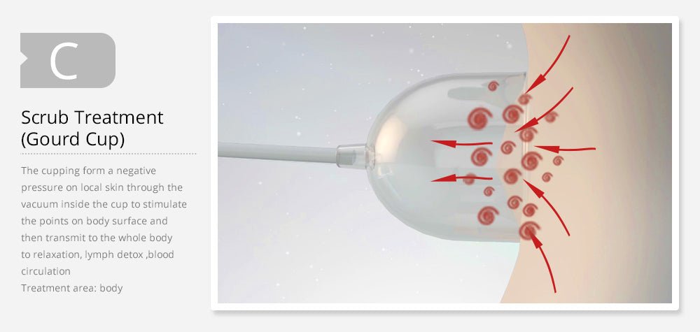 • Gentle vacuum suction stimulates circulation and improves skin elasticity.