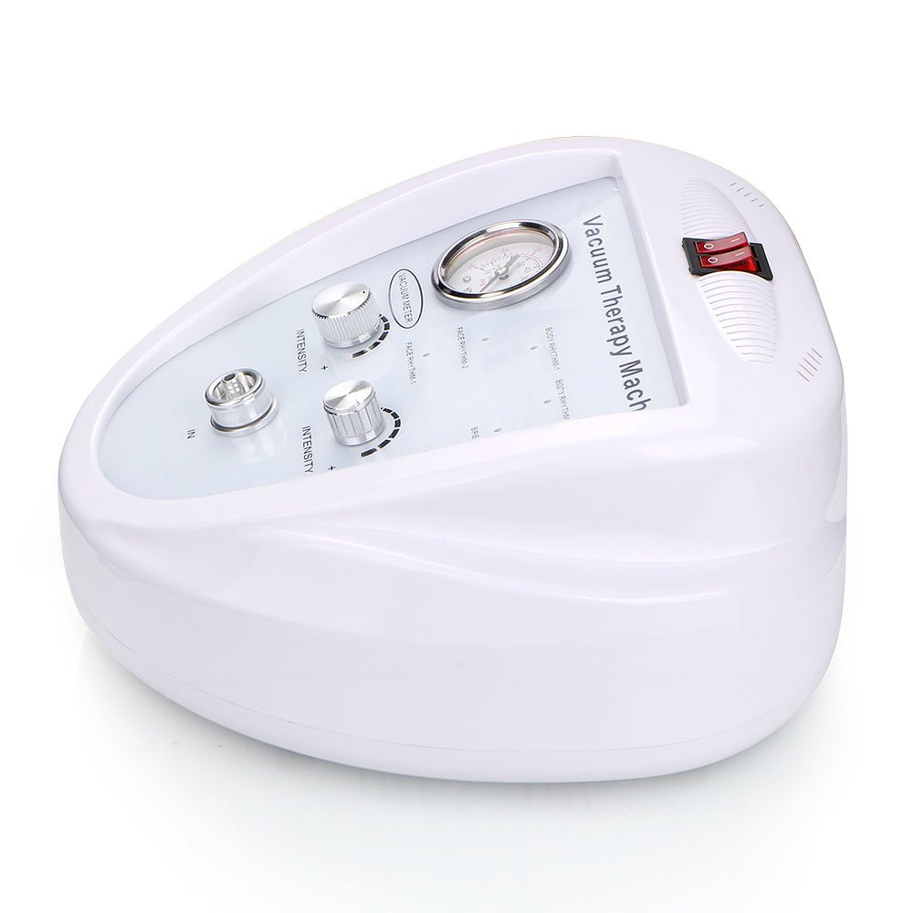 • Includes a comprehensive accessory kit: 6 cupping cups (3 sizes), 12 gas cups (6 sizes), 2 Y-shaped hoses (2 sizes), 1 white hose, 3 metal vacuum cups (34mm, 57mm, 79mm), and a power cord.