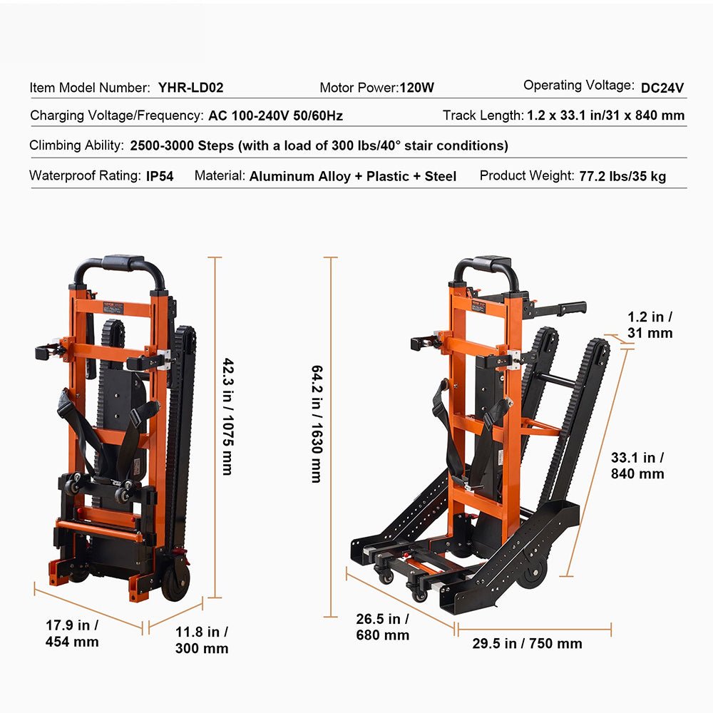 • Powerful 120W brushless motor — this electric hand truck doesn’t just climb stairs; it conquers them.