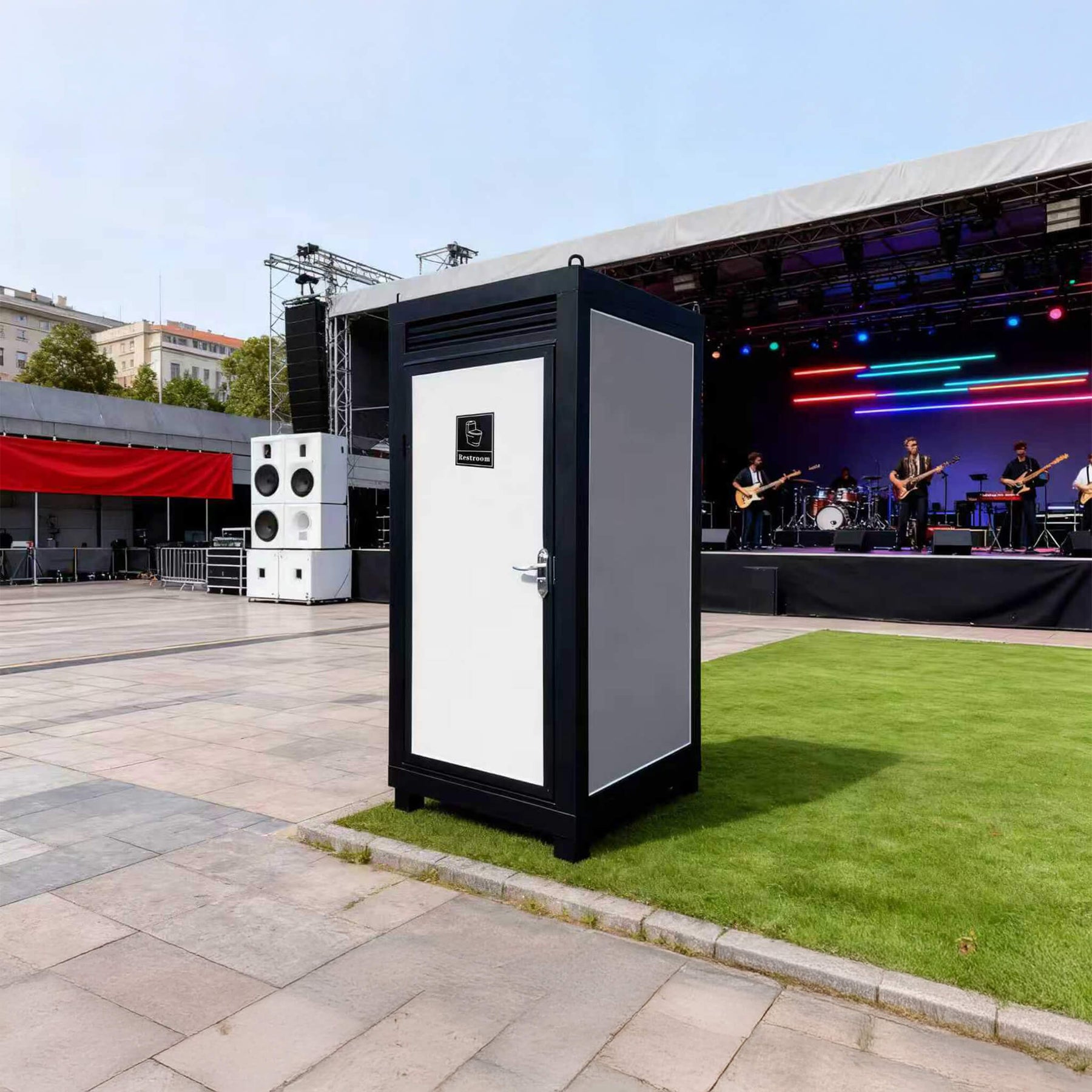 • The portable unit features a spacious single-stall design, with an interior layout optimized for comfort by offering adequate height and width to enhance the user experience.