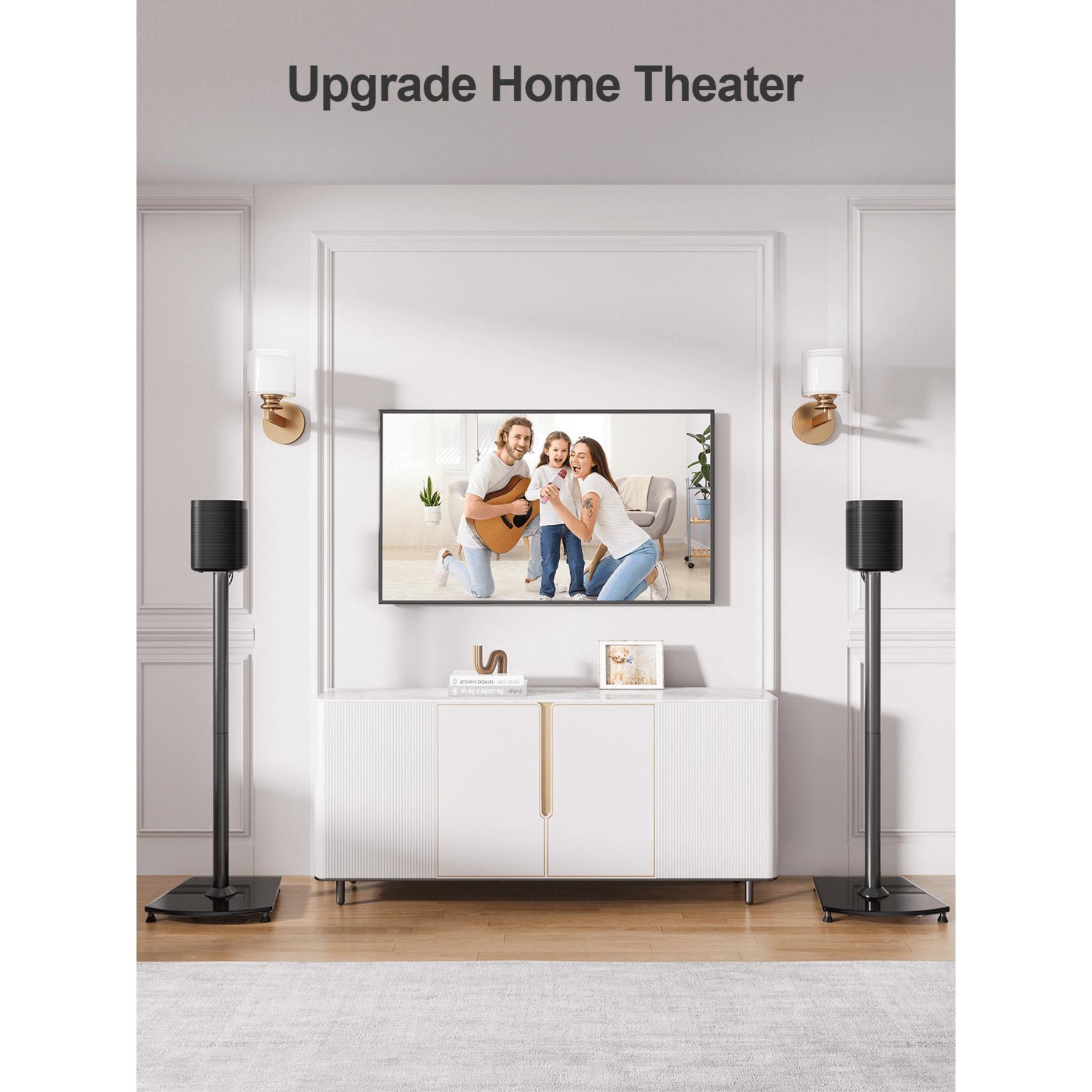 The ERSSM1-01B is designed to be compatible with ERA 100, ERA 300, Sonos One, One SL and Five speakers. With a clean, sturdy design featuring a steel pillar and glass base, you’ll get a solid foundation that looks as good as it sounds. Cable management runs through the pillar to keep wires neatly out of sight, so you can enjoy pristine audio without the visual clutter.