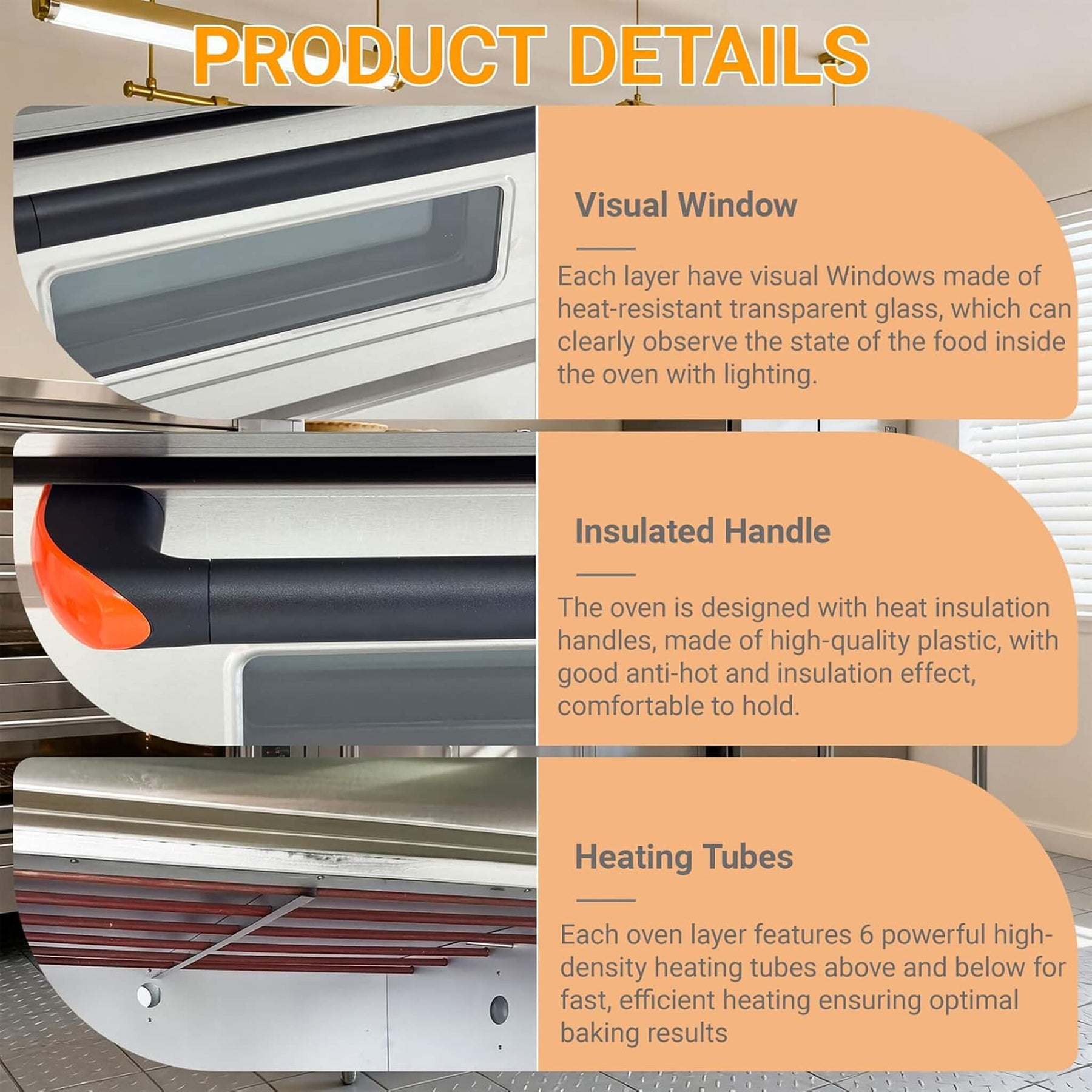 • Rear vents on each layer ensure excess gas discharge for better baking quality.