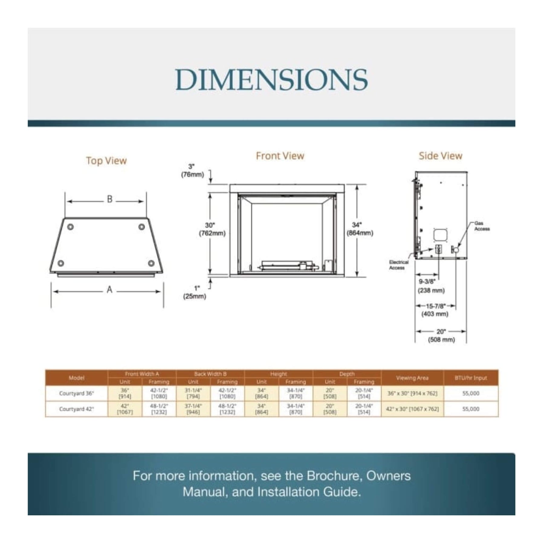 • 42" x 30" viewing area to fully enjoy the dancing flames.