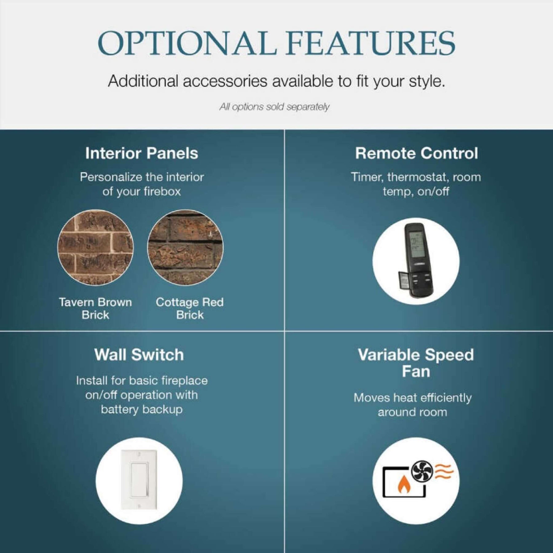 • Realistic split logs and glowing embers offer a genuine wood-burning look and feel.